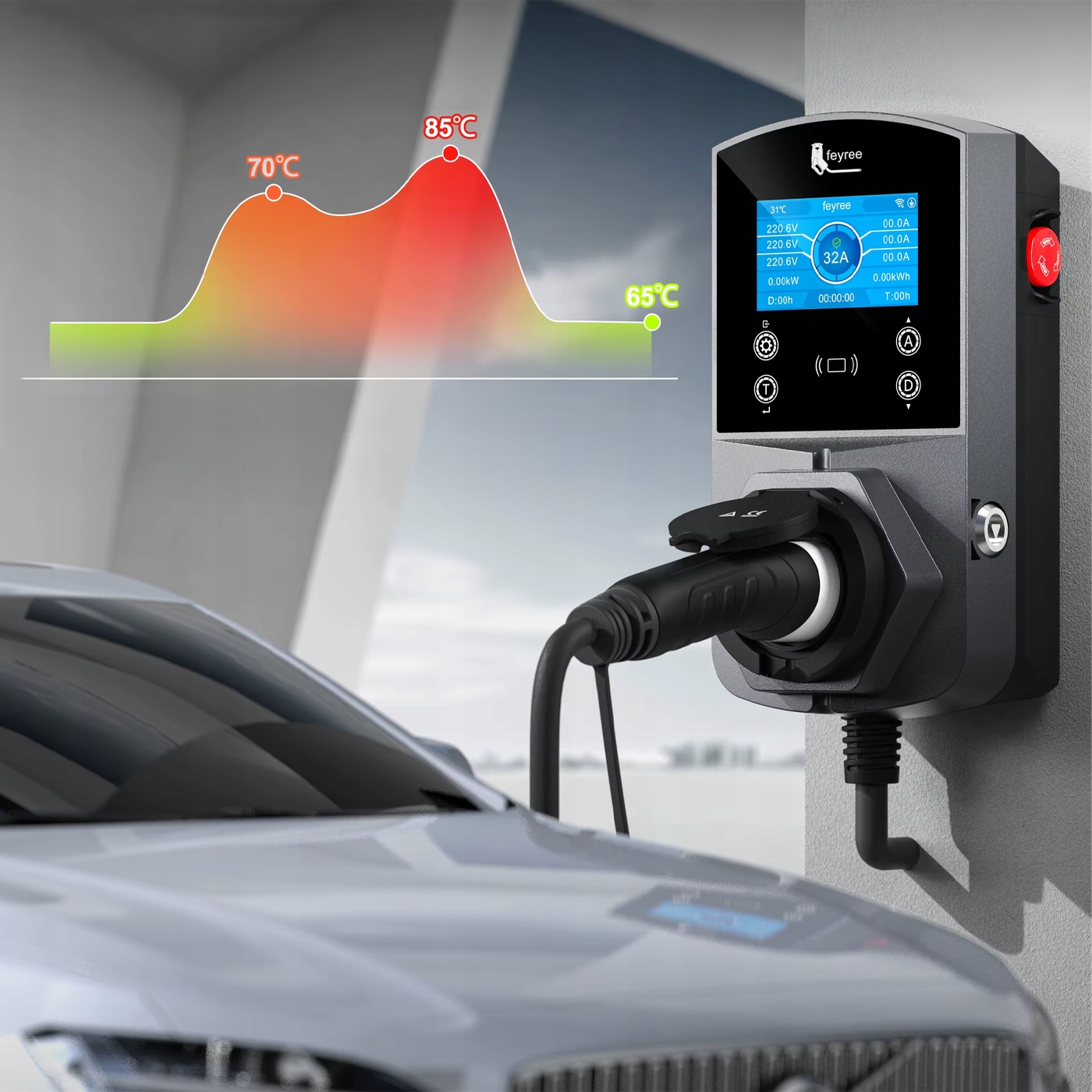 ⭐️ Розумна зарядна станція EV Wallbox типу 2 (розетка) – МАКСИМАЛЬНА потужність 22 кВт, 32 A, керування через додаток WiFi/Bluetooth, захист типу B (змінний струм 30 мА + постійний струм 6 мА), IP66, 1/3 фази – надзвичайно безпечно та ефективно! ⭐️