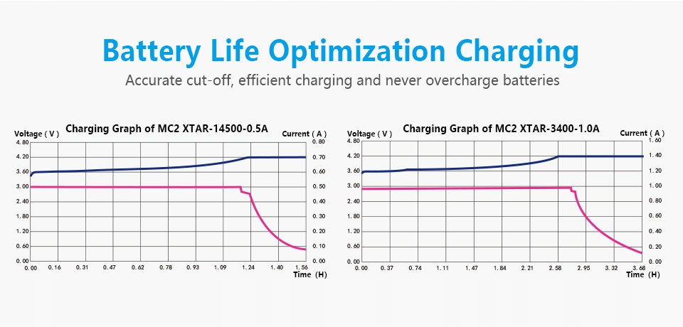 Зарядні пристрої інших виробників можуть значно знизити їхню ємність. підвищення температури заряджених елементів під час зарядки. Надмірне нагрівання елементів може призвести до їх швидшого зносу. Розробляючи зарядний пристрій MC2 Plus, Xtar пішов ще далі
