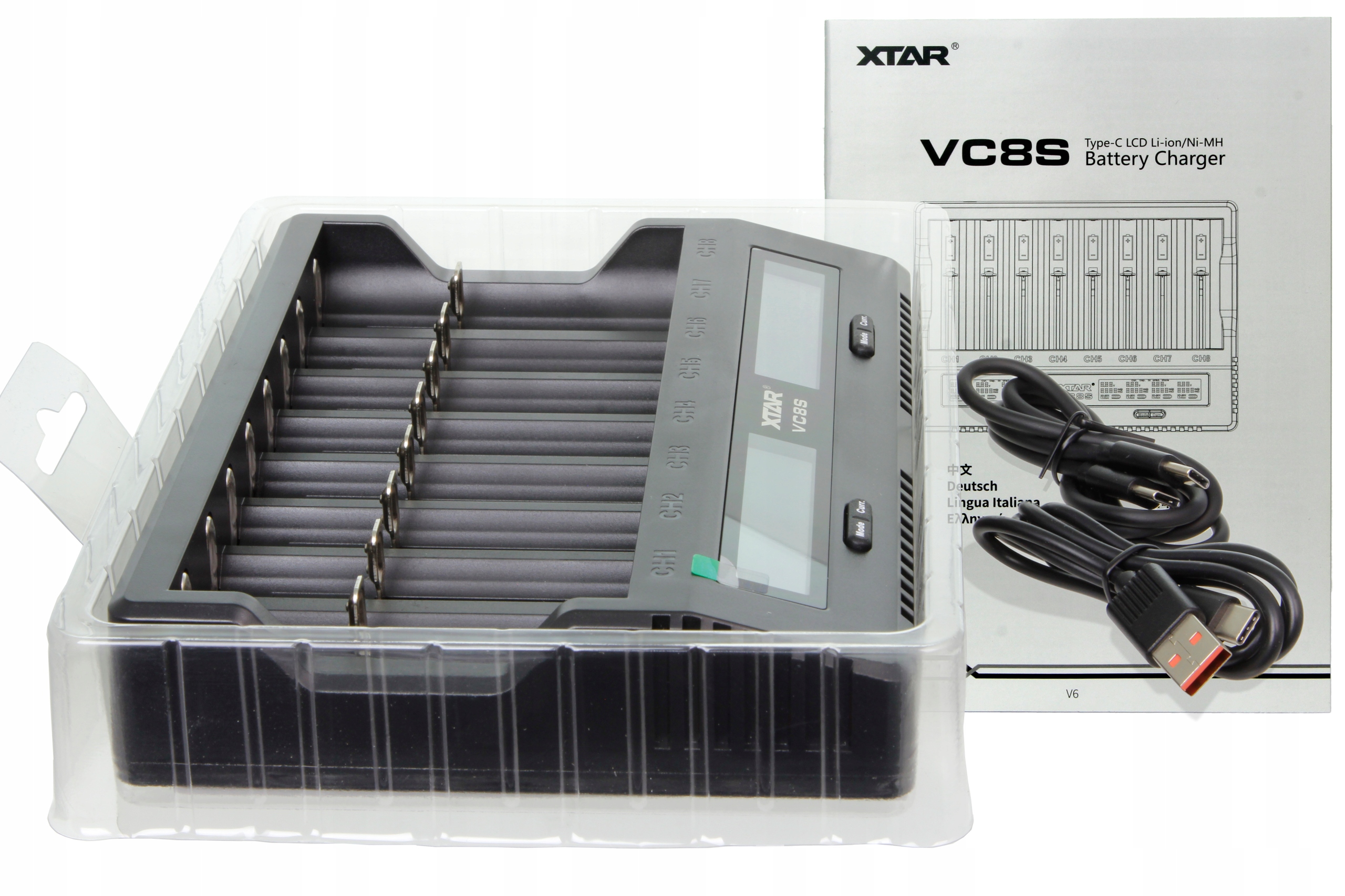 Пристрій XTAR VC8S — це повністю сумісний 8-канальний розумний зарядний пристрій для літій-іонних і нікель-метал-гідридних елементів із РК-дисплеєм. Підтримує розміри елементів від 10440 до 26650, AAA, AA, A, SC, C. Інтелектуальні функції заряджання, керовані MCU, дозволяють VC8S вибирати відповідний зарядний струм відповідно до вхідної потужності, що в кінцевому підсумку захищає як акумулятори, так і зарядний пристрій від перегріву і пошкодження. Завдяки вбудованому РК-екрану легко побачити статус заряджання в режимі реального часу з інформацією про напругу, струм заряджання, ємність акумулятора, заряд, який використовується для заряджання, і стан заряджання, а також внутрішній опір. XTAR VC8S має кілька засобів захисту, запрограмованих для безпечного заряджання, включаючи захист від надточного струму, перевантаження, перенапруги та короткого замикання, які захищають батареї та забезпечують їх повне використання. Крім того, завдяки високому коефіцієнту перетворення та низькому тепловиділенню немає ризику для зарядного пристрою чи елементів. Зарядний пристрій може заряджати захищені Li-ION акумулятори розмірів: 20700 і 21700 довжиною до 75 мм.