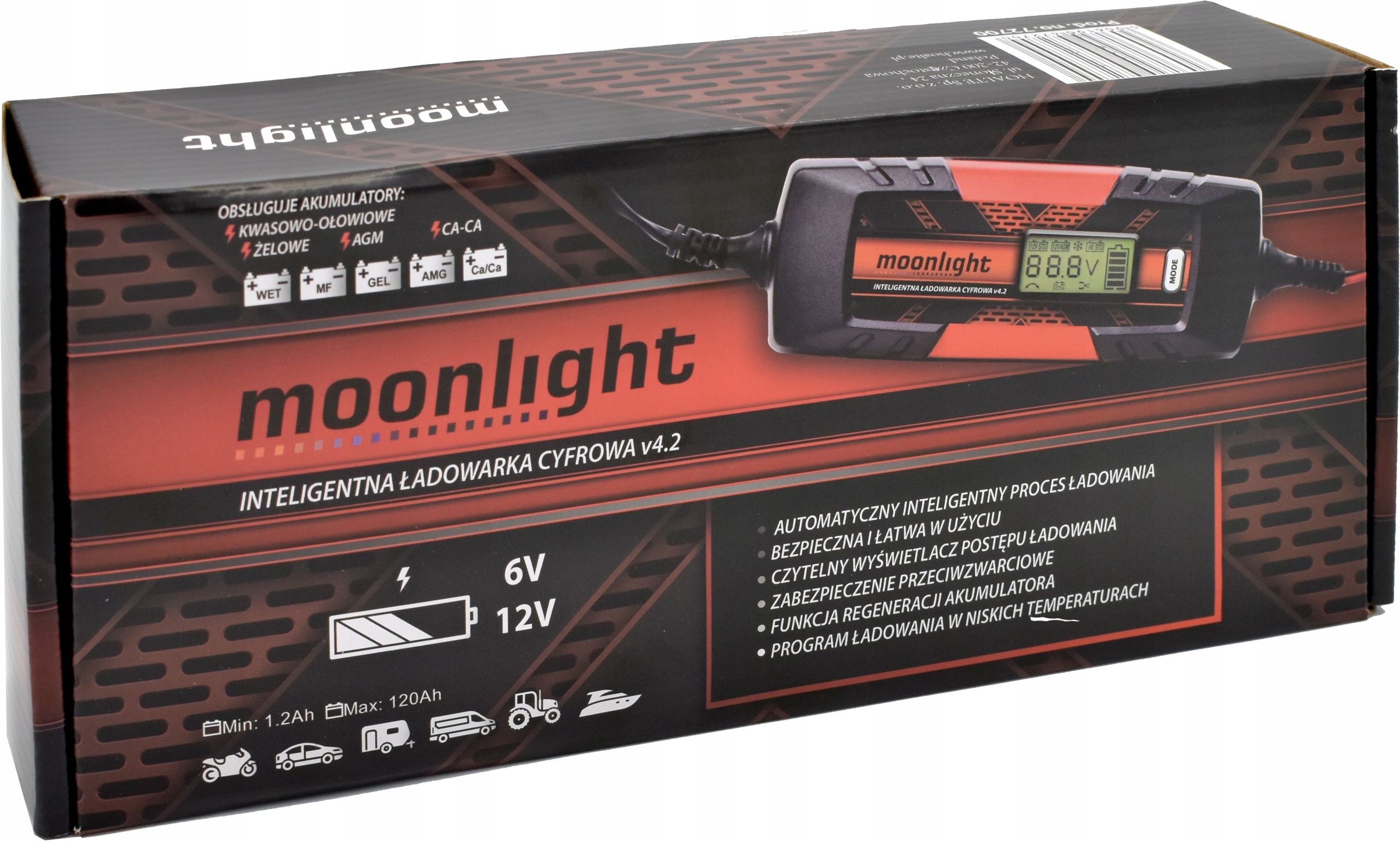 ЗАРЯДНИЙ ПРИСТРІЙ ВИПРЯМНЮВАЧ АКУМУЛЯТОРА 6/12V 1.2-120Ah MOONLIGHT v4.2 AGM GEL