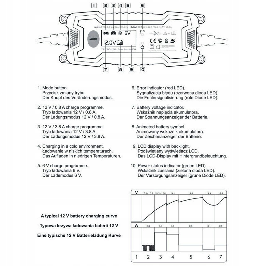 Пристрій, керований мікропроцесором - після повної зарядки він автоматично вимикається, перемикаючись у режим моніторингу напруги - 100% безпечний для будь-якої батареї.