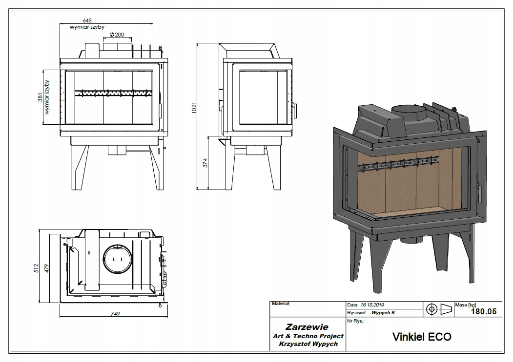 Камін Вставка Vinkiel Eco, виготовлена з котлової сталі з 4 -мм товщиною стінки в технології ЧПУ: