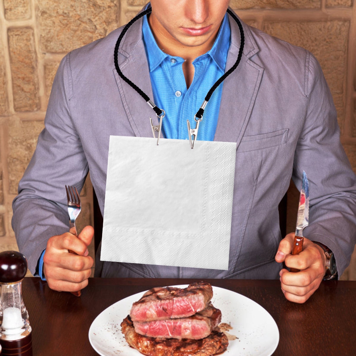 ✅Ланцюжок для серветок може міцно зафіксувати серветку під час під час їжі, тож вам не доведеться хвилюватися про вислизнення серветки та плями на краватці чи сорочці.
