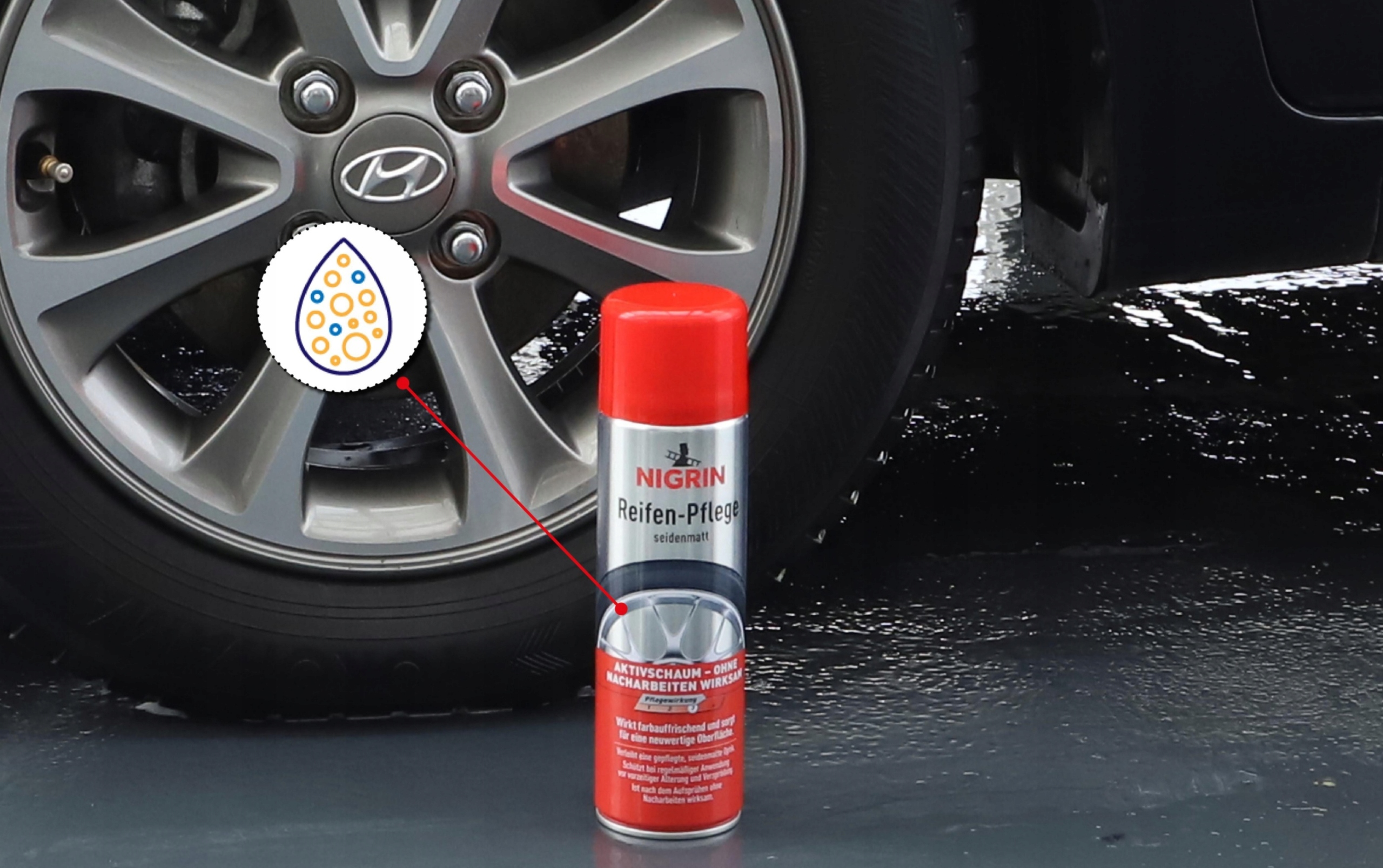 Спрей для блиску та догляду за шинами NIGRIN Performance створює міцну захисну поверхню, стійку до ультрафіолетових променів, води та бруду, таким чином зменшуючи кількість робіт з технічного обслуговування.