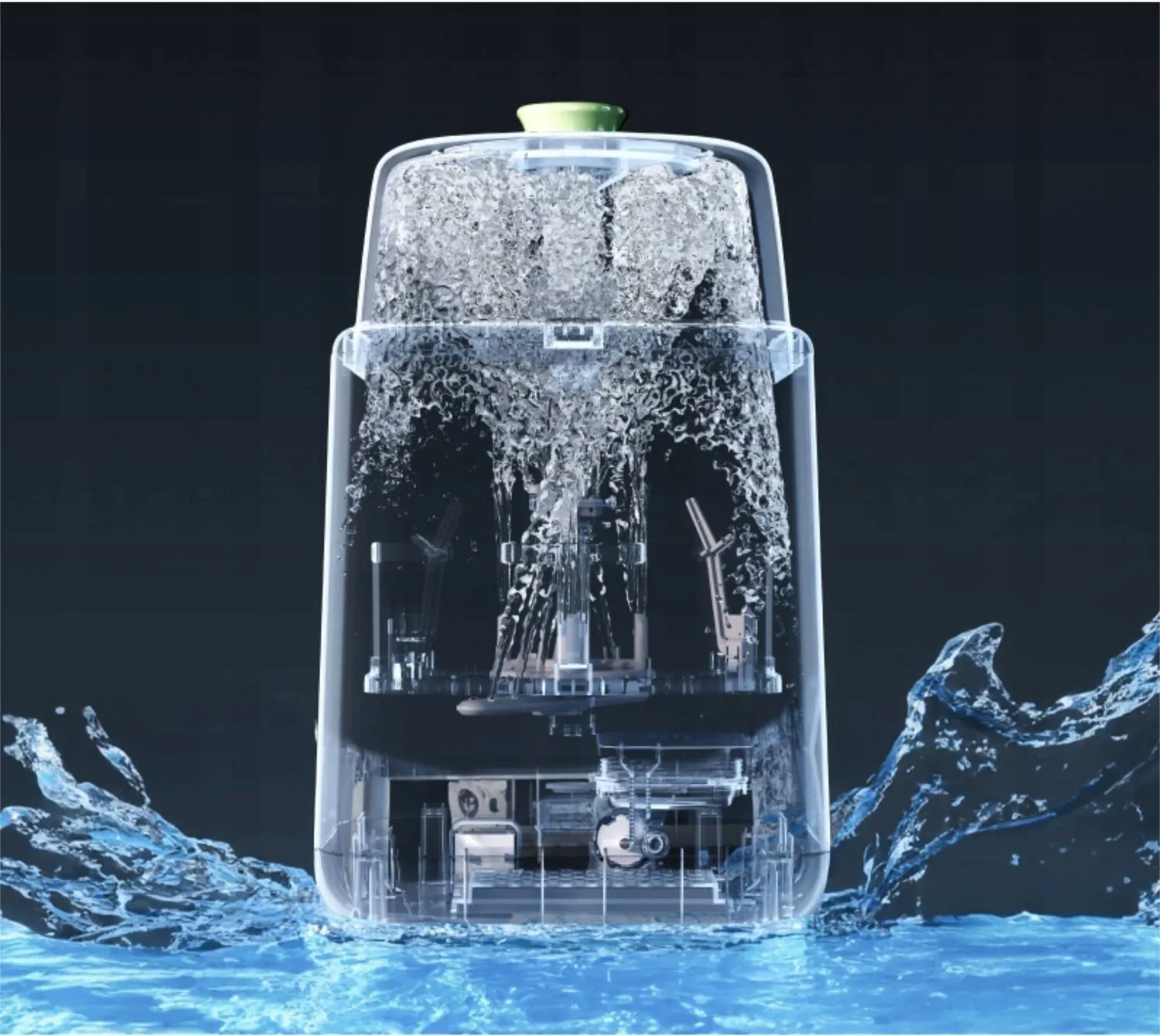 жодна пляма не буде пропущена, оскільки 12 спрямованих розпилюючих форсунок у 4 наборах чистять внутрішню частину кожної пляшки, а 10 обертових розпилюючих форсунок очищають поверхню.