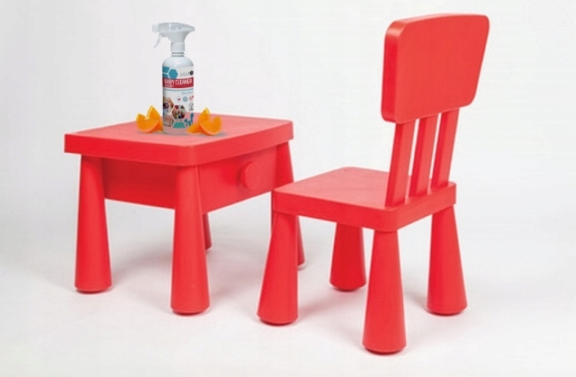 Безпечна, гіпоалергенна, на 100% натуральні інгредієнти, рідина для миття іграшок, дитячих речей, аксесуарів, меблів, текстилю та інших поверхонь, з якими контактують діти. Він має європейський знак якості V-Label для веганських продуктів.