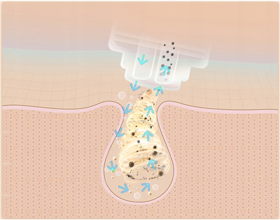 Ультрамікропотік води створює циркуляційну петлю через вакуумний негативний тиск, витягуючи надлишок шкірного сала та забруднення з пор шкіри.