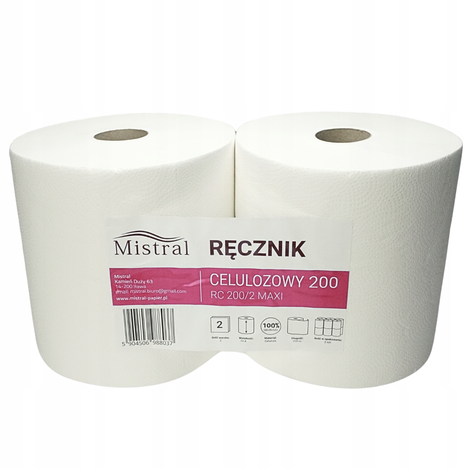⭐ 2 білих паперових рушника Premium, 2 шари, 100% целюлоза, 200 м ⭐