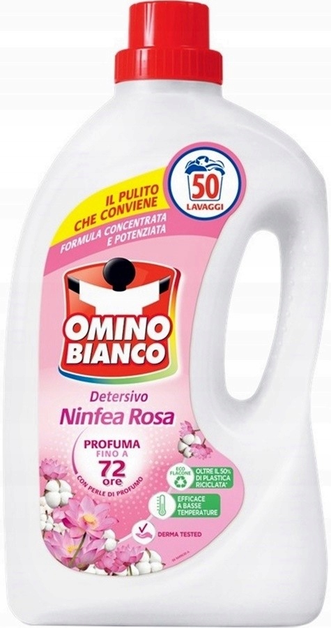 Універсальна рідина для прання білого та кольорового одягу з ароматом рожевого латаття та бавовни Omino Bianco з концентрованою формулою, посиленою ензимами.