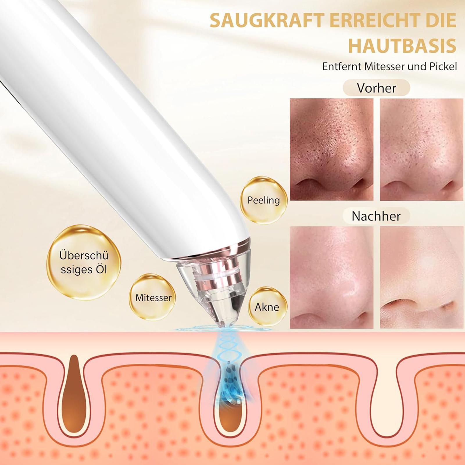 1. Засіб для видалення чорних крапок і очищувач пор: Оснащений професійною технологією вакуумної адсорбції, цей засіб для видалення чорних крапок і очищувач пор забезпечує сильніше всмоктування та глибше очищення шкіри. Ефективно видаляє чорні крапки, прищі, частинки шкірного сала, омертвілу шкіру, залишки косметики тощо, забезпечуючи безпечніші та ефективніші вирішення проблем зі шкірою обличчя, надаючи шкірі новий блиск.