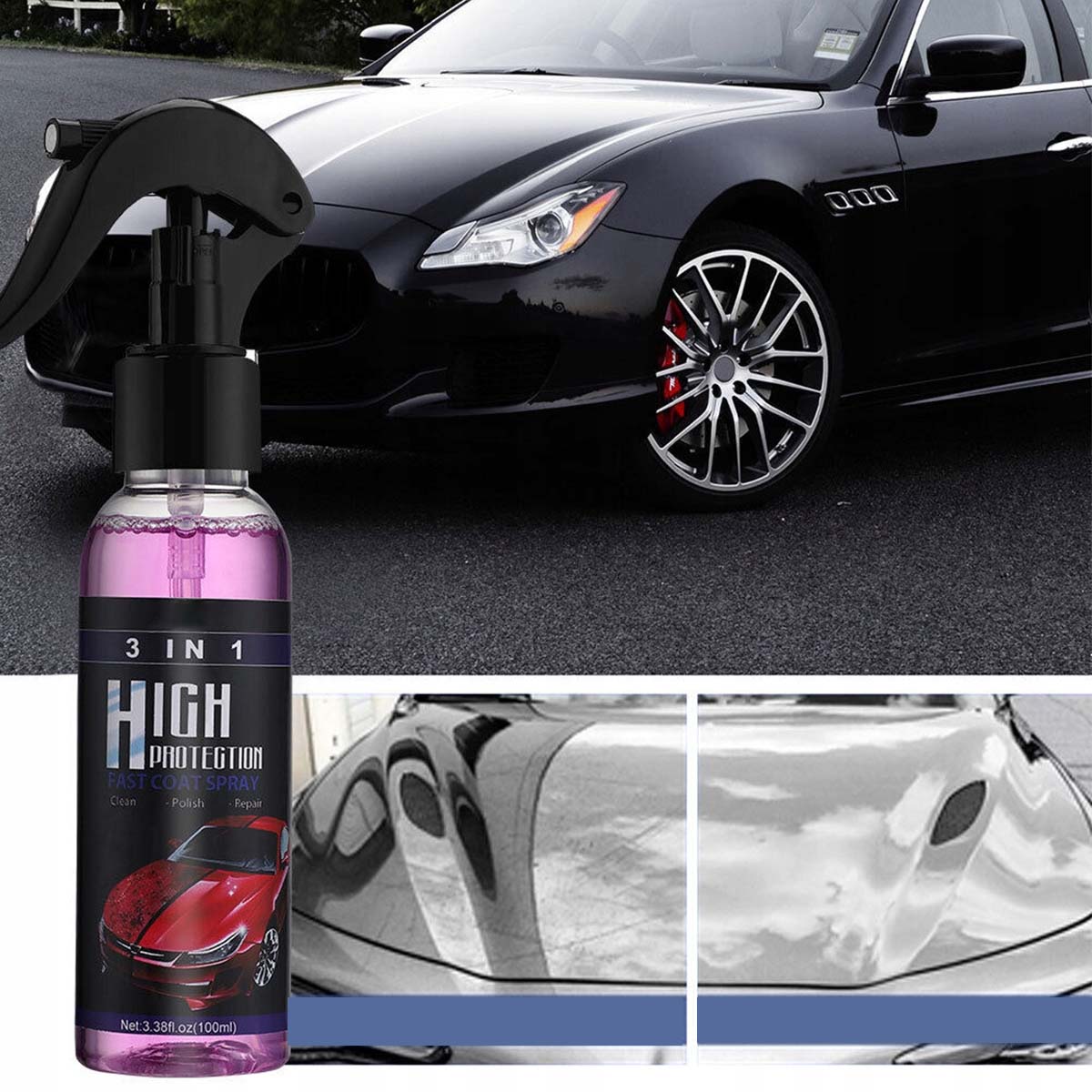 🔎✅ Спрей 3 в 1 з високим захистом, гідрофобний, швидковисихаючий, з керамічним покриттям для автофарби, 100 мл (губка і рушник в комплекті)🔎✅