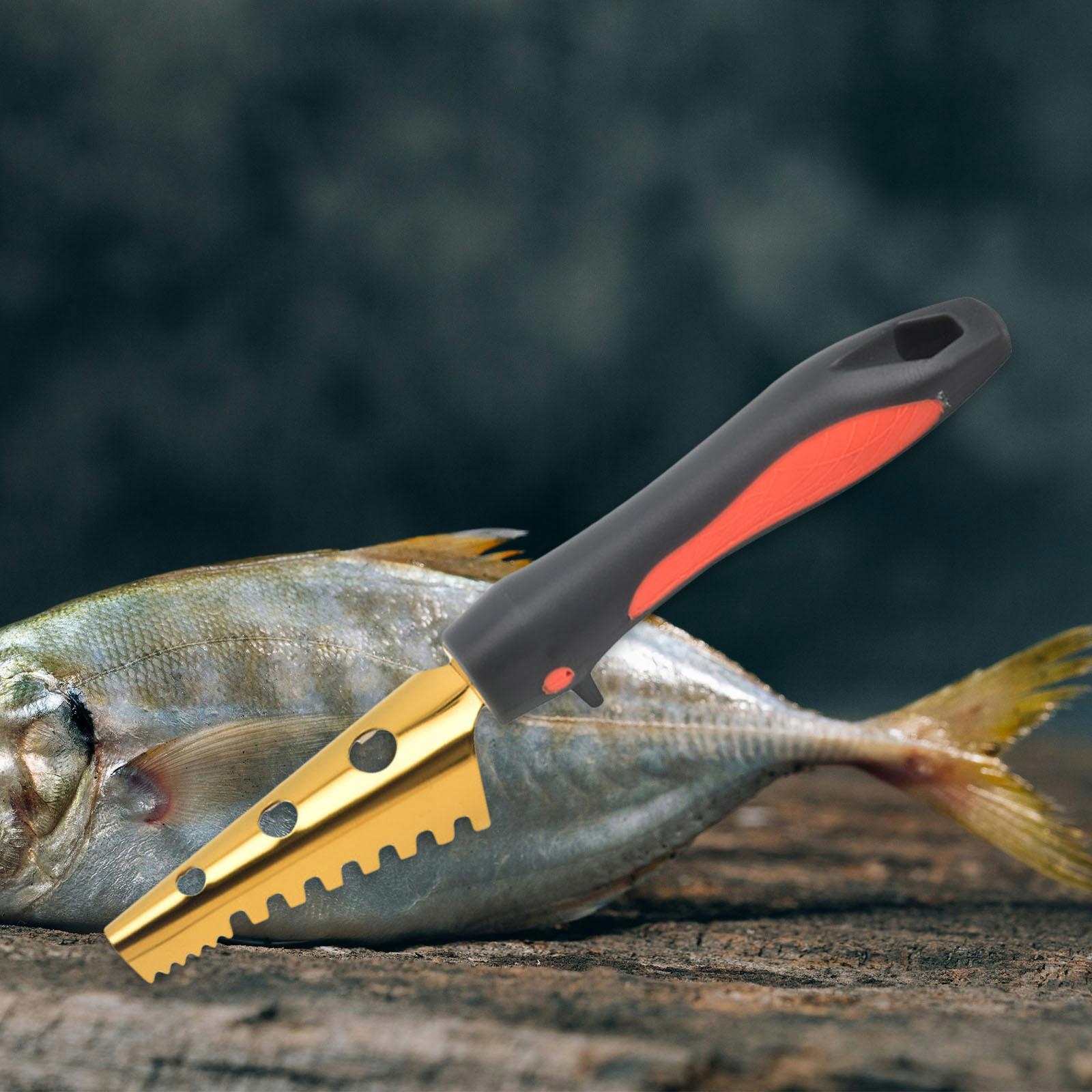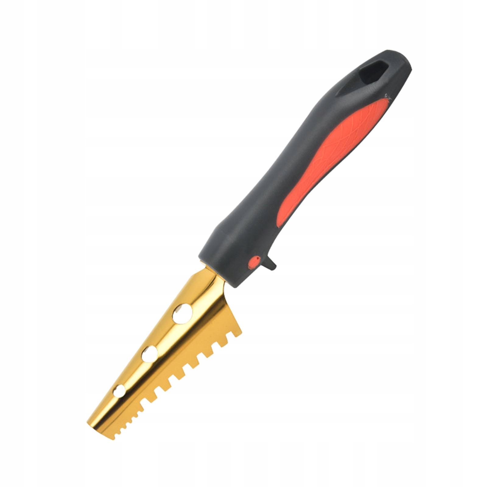 [Унікальний дизайн]: рибочистка має привабливий золотистий колір, який додає елегантності вашим кухонним інструментам, з отвором, яку легко підвішувати.