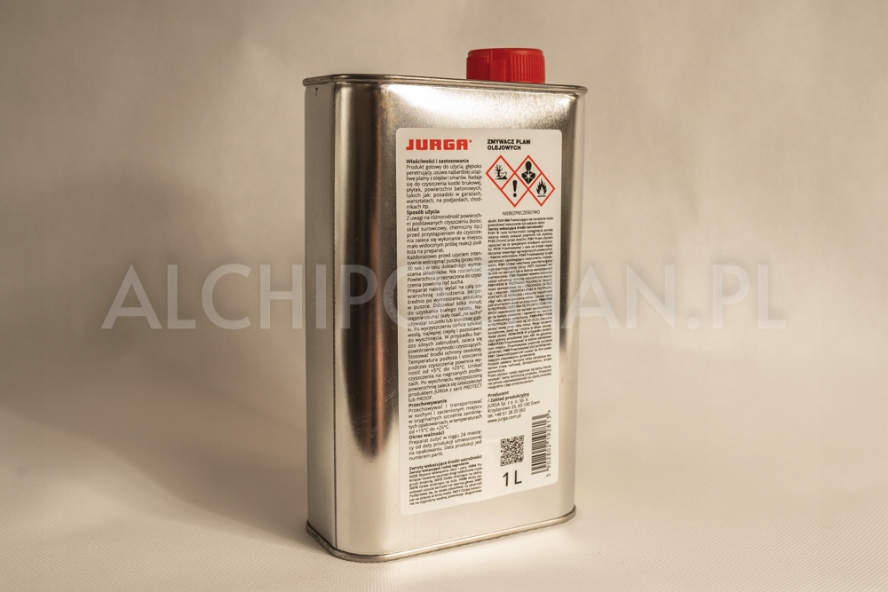 Упаковка містить 1 л засобу для виведення плям JURGA OIL.