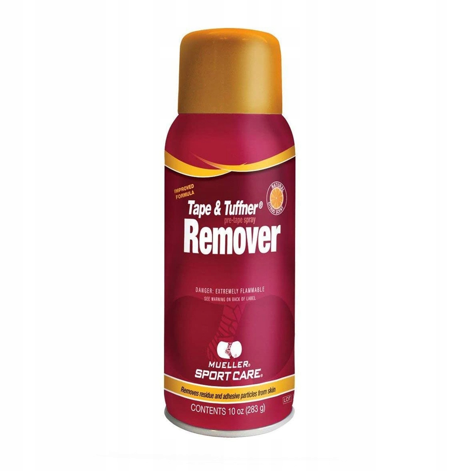 Mueller Tape & Tuffner Remover – це надійний спрей, який видаляє клей. Ідеально знімає кінезіотейпи, жорсткі тейпи та різні види пластирів. Спрей також підходить для видалення мазей і жиру з тренажерів. Також рекомендується для видалення інших спреїв, мазей або клеїв. Препарат після розпилення на стрічку розчиняє клей, завдяки чому її можна швидко і безболісно видалити. Його можна наносити безпосередньо на шкіру