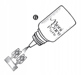 Відкрутіть кришку контейнера Progent і вилийте його вміст. Промийте лінзи, що залишилися в тримачі лінз, звичайною промивною рідиною (MeniCare Pure).