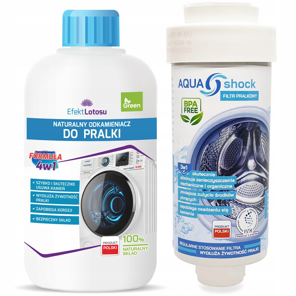 ФІЛЬТР ВОДИ для ПРАЛЬНОЇ МАШИНИ AQUA shock 3in1 РІЧНИЙ РІЧНИЙ ЗАСІБ + Натуральний ЗАСІБ ДЛЯ ПРАЛЬНОЇ МАШИНИ GłosLotosu 500мл