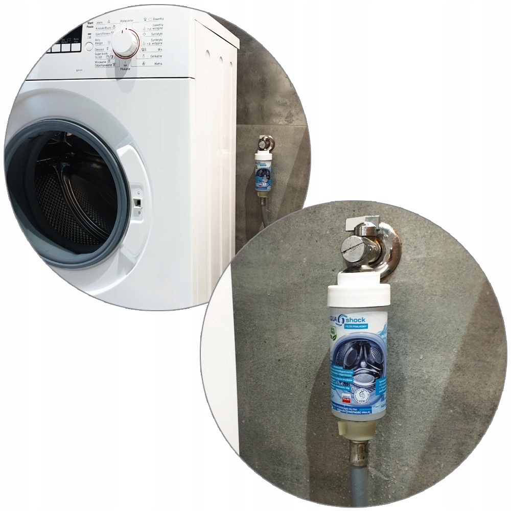 Фільтр для пральної машини AQUA shock захищає пральну машину від шкідливого впливу вапняного нальоту. Зменшує витрату миючих засобів і підвищує їх ефективність. Використовуючи фільтр пральної машини, ми можемо позбутися жорсткої води в пральній машині. Поліфосфат, що міститься у фільтрі, не знижує жорсткість води, а створює тонкий захисний шар у трубах/пристроях, що запобігає утворенню накипу. Заслугою цієї дії є кристалізація карбонатів. Покращення якості води помітно відразу. Наша білизна стане м’якшою і не втратить належний колір.