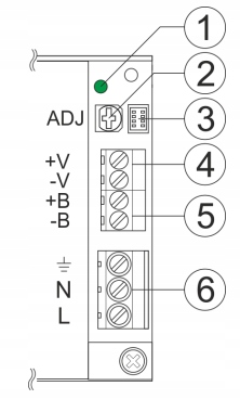 - оптична індикація роботи: зелений світлодіод (наявність напруги постійного струму)