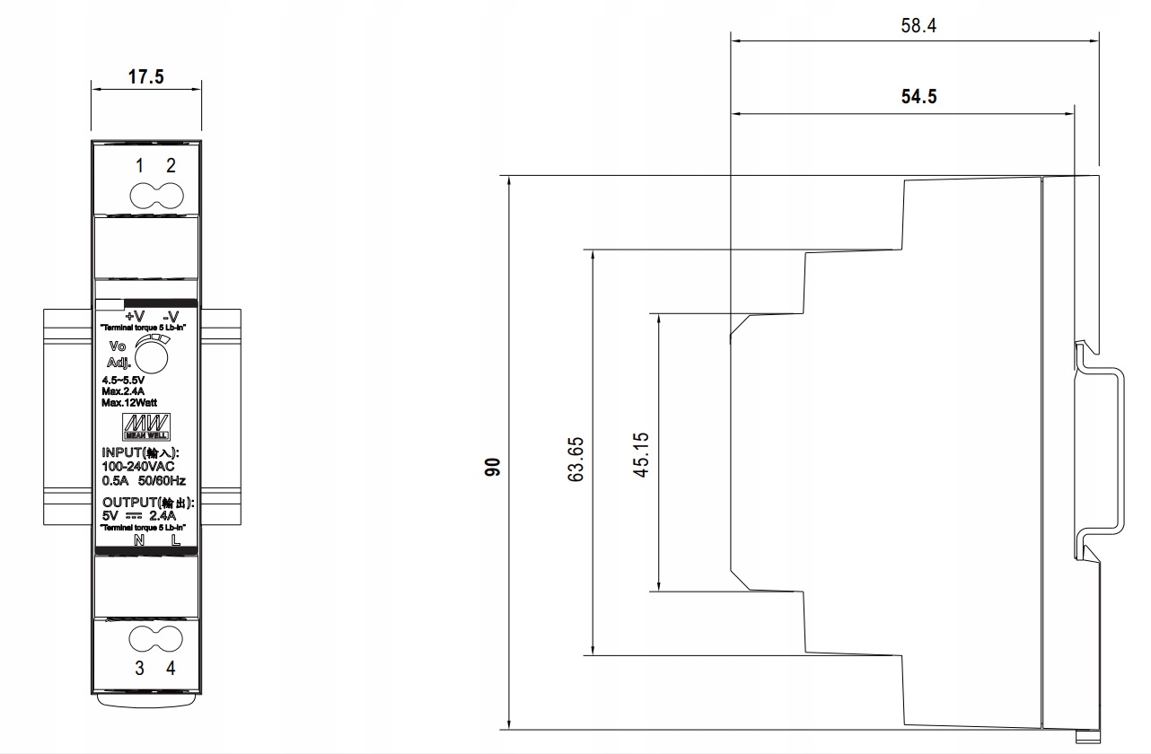 ZASILACZ IMPULSOWY 12 V DC 1.25 A 15 W NA SZYNĘ DIN 12V
