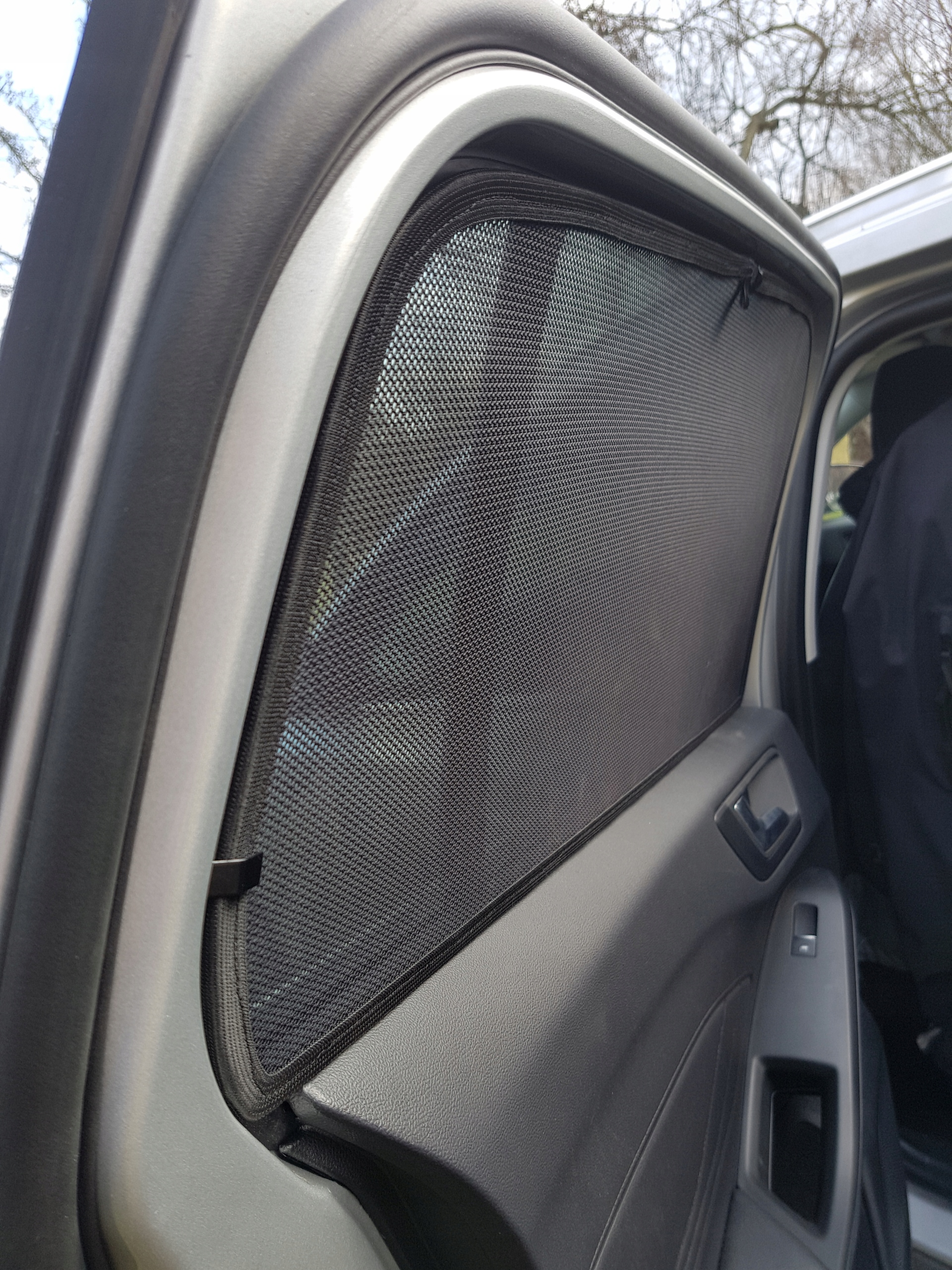 * При відкритих вікнах вони все ще виконують свою функцію захисту від сонця та ультрафіолетового випромінювання. Крім того, вони захищають від комах і забезпечують вентиляцію, необхідну для людей, які залишаються в автомобілі, або залишених тварин >.