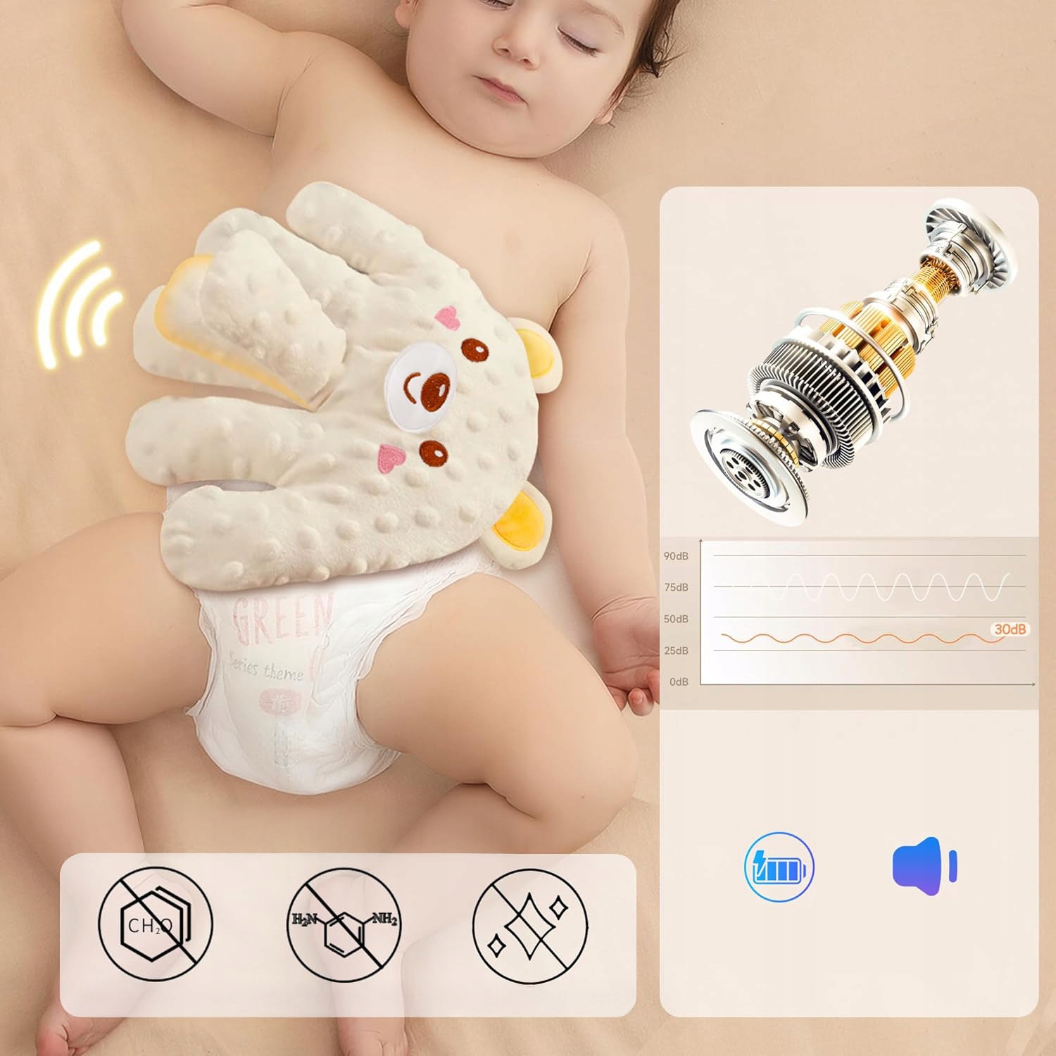 - 🧸💤- Створений у формі маленького плюшевого ведмедика, він має милі, ніжні рухи, які привертають увагу дитини.