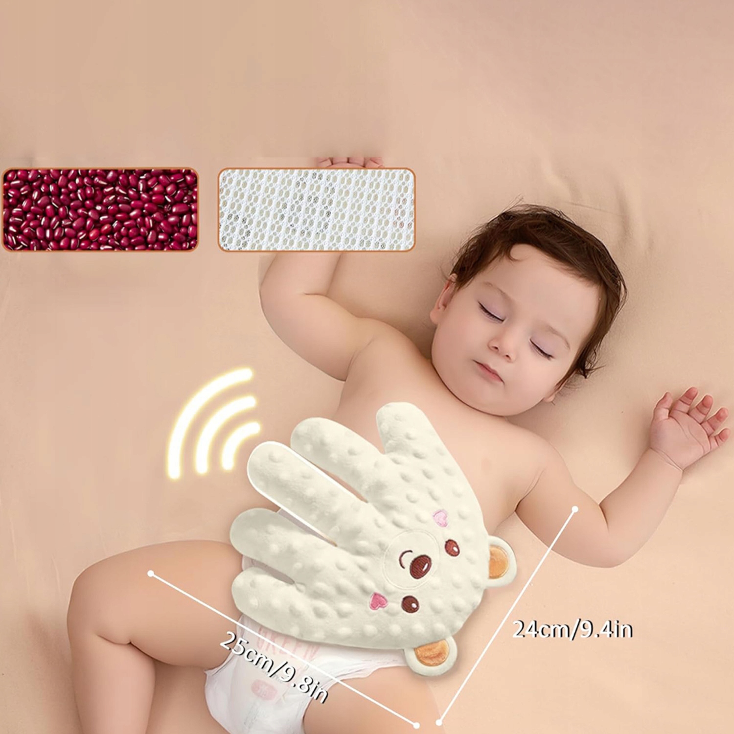 - 🧸💤- Виготовлений з дитячого поліестеру, м’який, приємний до шкіри, приємний на дотик, наповнений натуральною червоною квасолею.