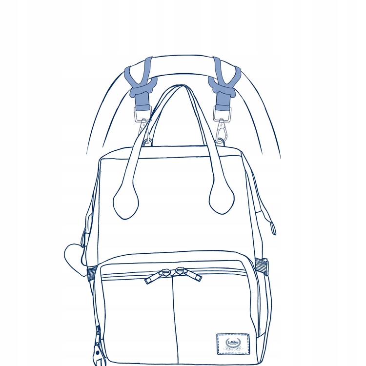 Універсальні гачки до візка дозволяють легко прикріпити рюкзак або сумку, щоб вони були під рукою. Матеріал, з якого виготовлені ручки - це спеціальний гнучкий матеріал, який захистить рюкзак і сумочку від ковзання по ручкам коляски. Завдяки карабінам, ручки дозволяють швидко і дуже просто монтувати і розбирати. Вони підходять до всіх сумок, органайзерів і рюкзаків La Millou, доступних на наших аукціонах Allegro.