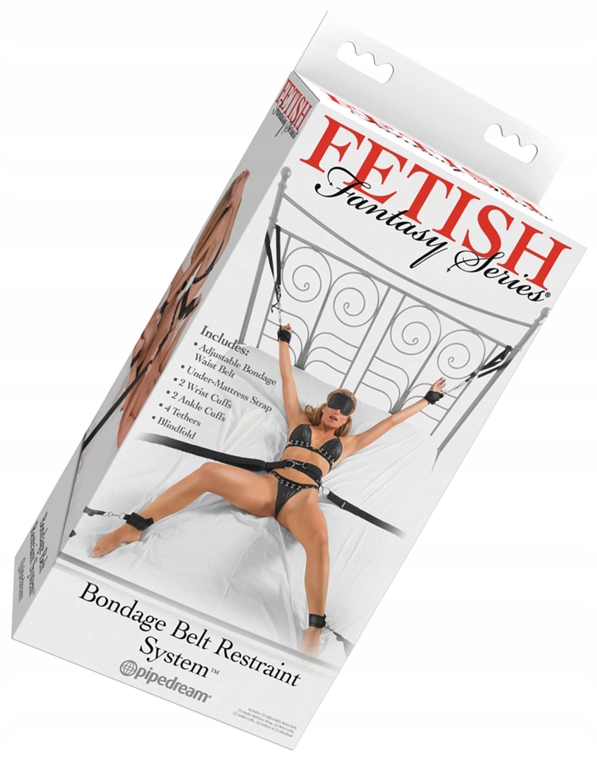 Ліжний бондажний набір, що складається з ремінця для матраца, ременя для живота, 4 наручників для рук і ніг і 4 ременів для бондажу. Ремінь матраца поміщається під матрац, а до нього прикріплюється пов’язаний ремінь для живота. Іммобілізуючі ремені прикріплені до кожної з манжет на руках і стопах за допомогою карабінів. Усі пояси та ремені стійкі до розривів і регулюються. Зручні манжети на руках і щиколотках оснащені практичними застібками на липучках, щоб їх можна було відрегулювати під ЇЇ чи ЙОГО.