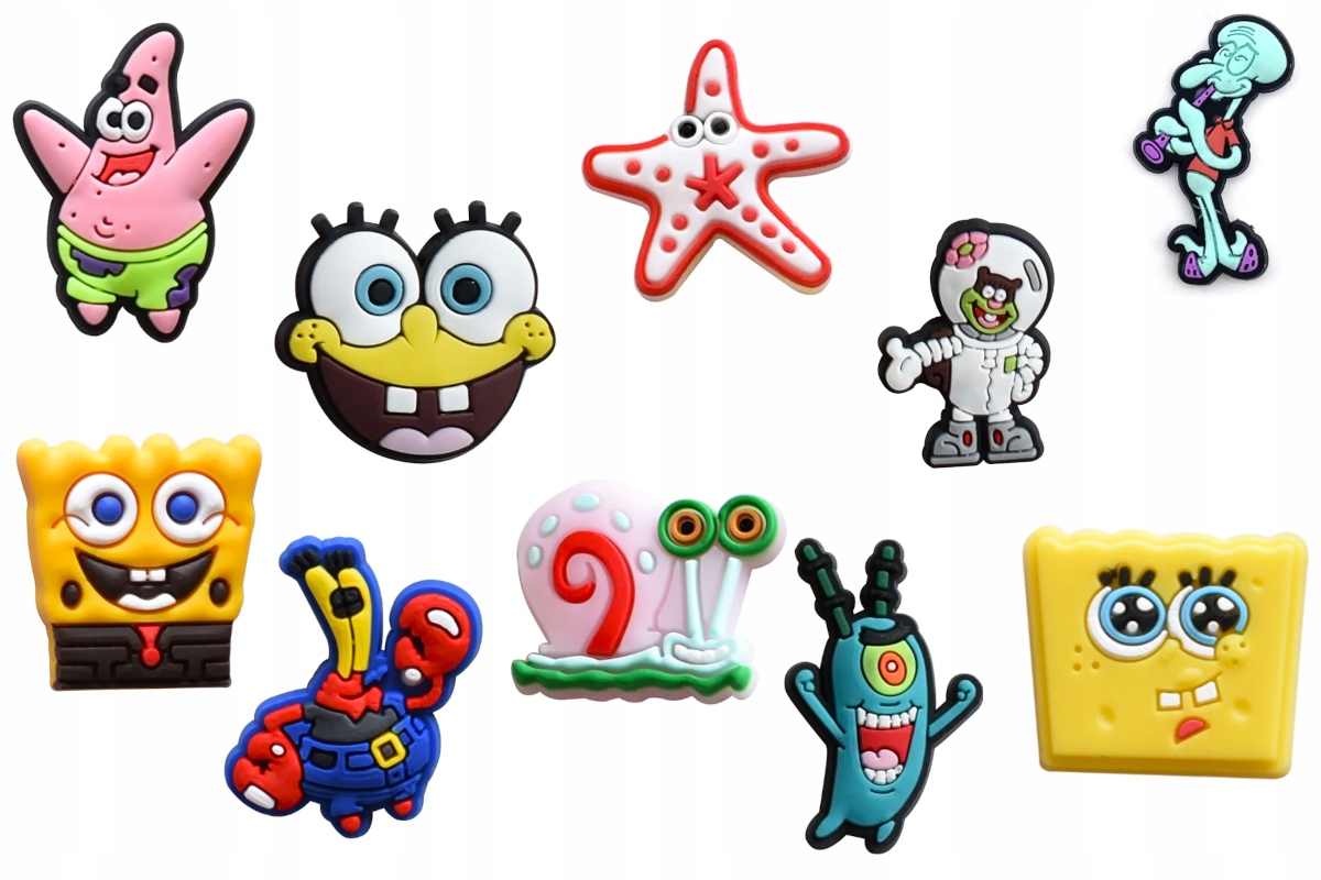 ЗАСТІБКИ-ШПИЛЬКИ ДЛЯ ВЗУТТЯ CROCS SPONGEBOB PIN CHARMS ШТАМПИ 10 ШТ