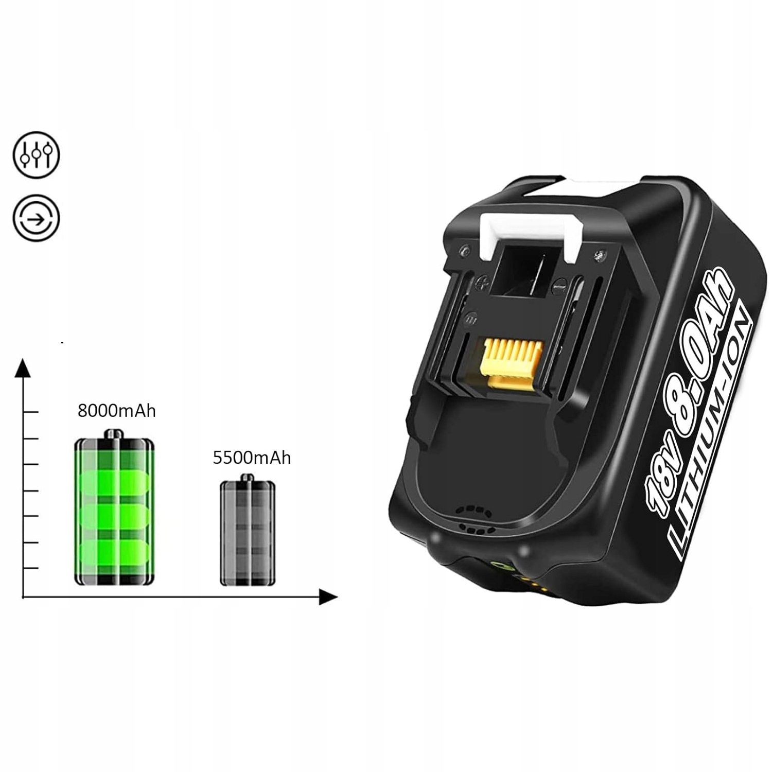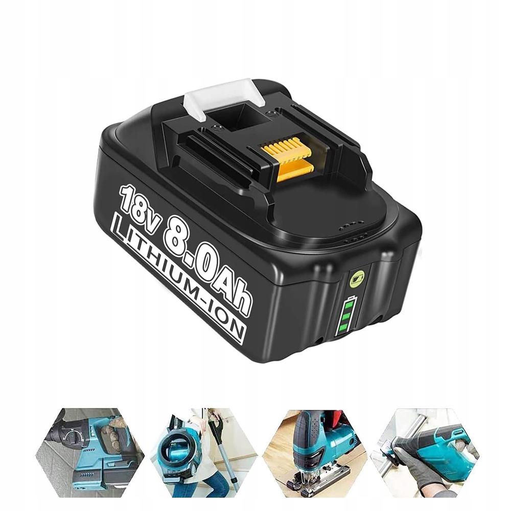 - Замінна батарея для Makita 1батарея 8 В 8,0 Аг з 3 Світлодіодні індикатори, які в будь-який час показують споживання батареї та не забезпечують ефект пам'яті, ідеально підходять для сумісності з акумуляторними інструментами Makita. Вбудований захист від перегріву, перезарядження та короткого замикання подовжує термін служби акумулятора.