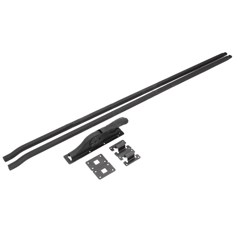 Гаражна засувка Essential з брусків 15х15 мм і ручкою, пофарбована порошковою фарбою в чорний колір. Засув найчастіше використовується для закриття дверних полотен або гаражних воріт.