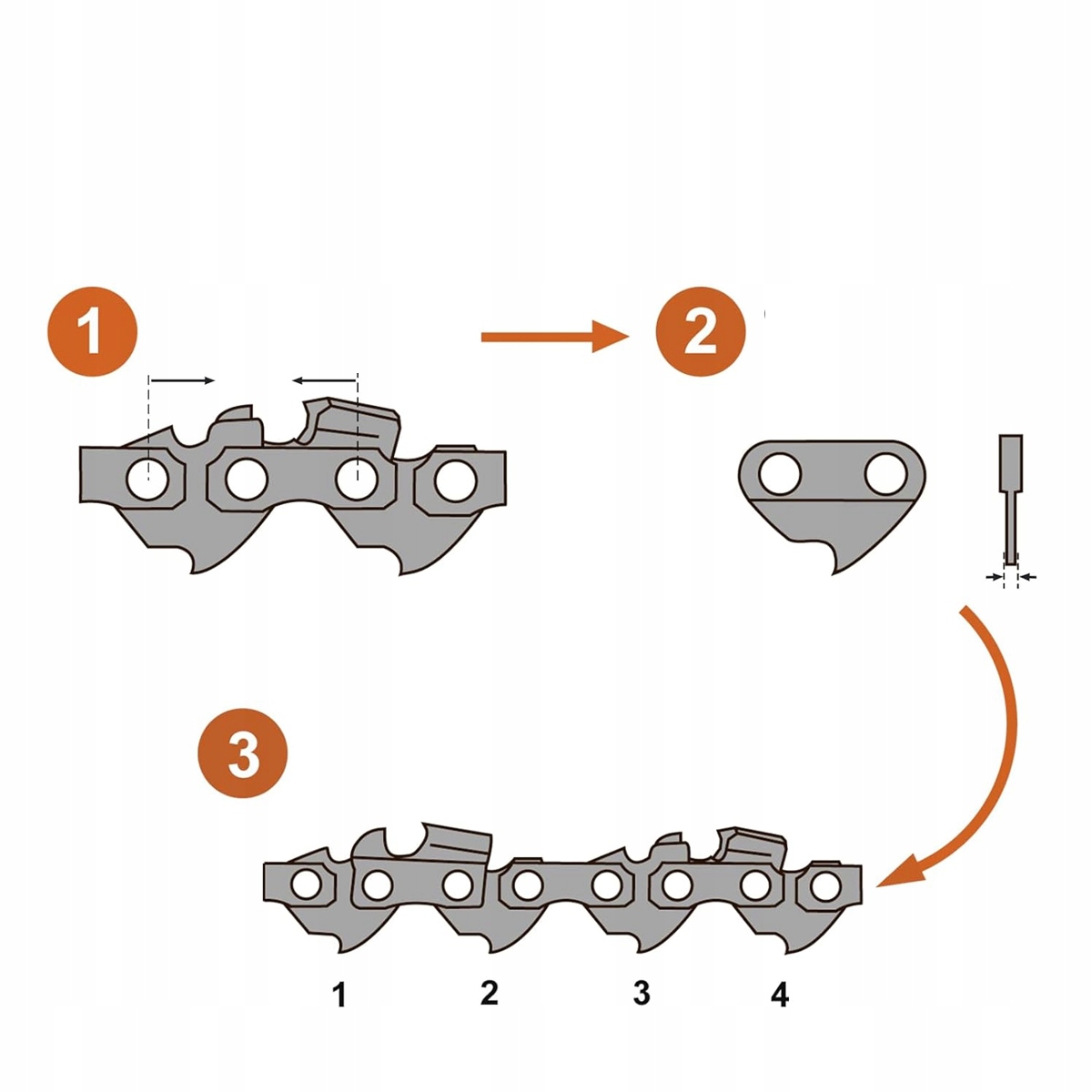Ланцюжок технічних даних: ланцюг для ланцюга пилки 16 дюймів (40 см), 3/8 "шкала LP, товщина 0,050", 56 приводних клітин, 28 лопатей.