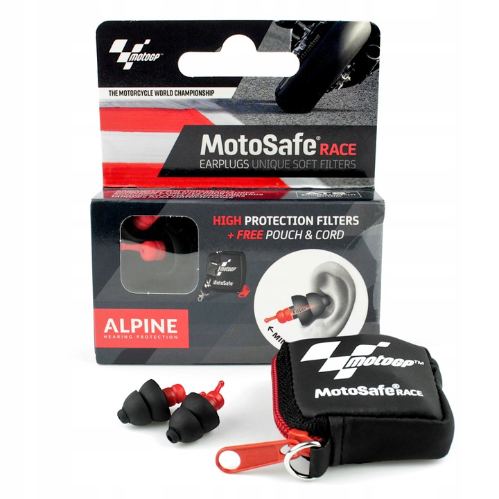 Набір містить пару заглушок/заглушок MOTOSAFE RACE і зручний дорожній футляр зі шнурком для їх зберігання.