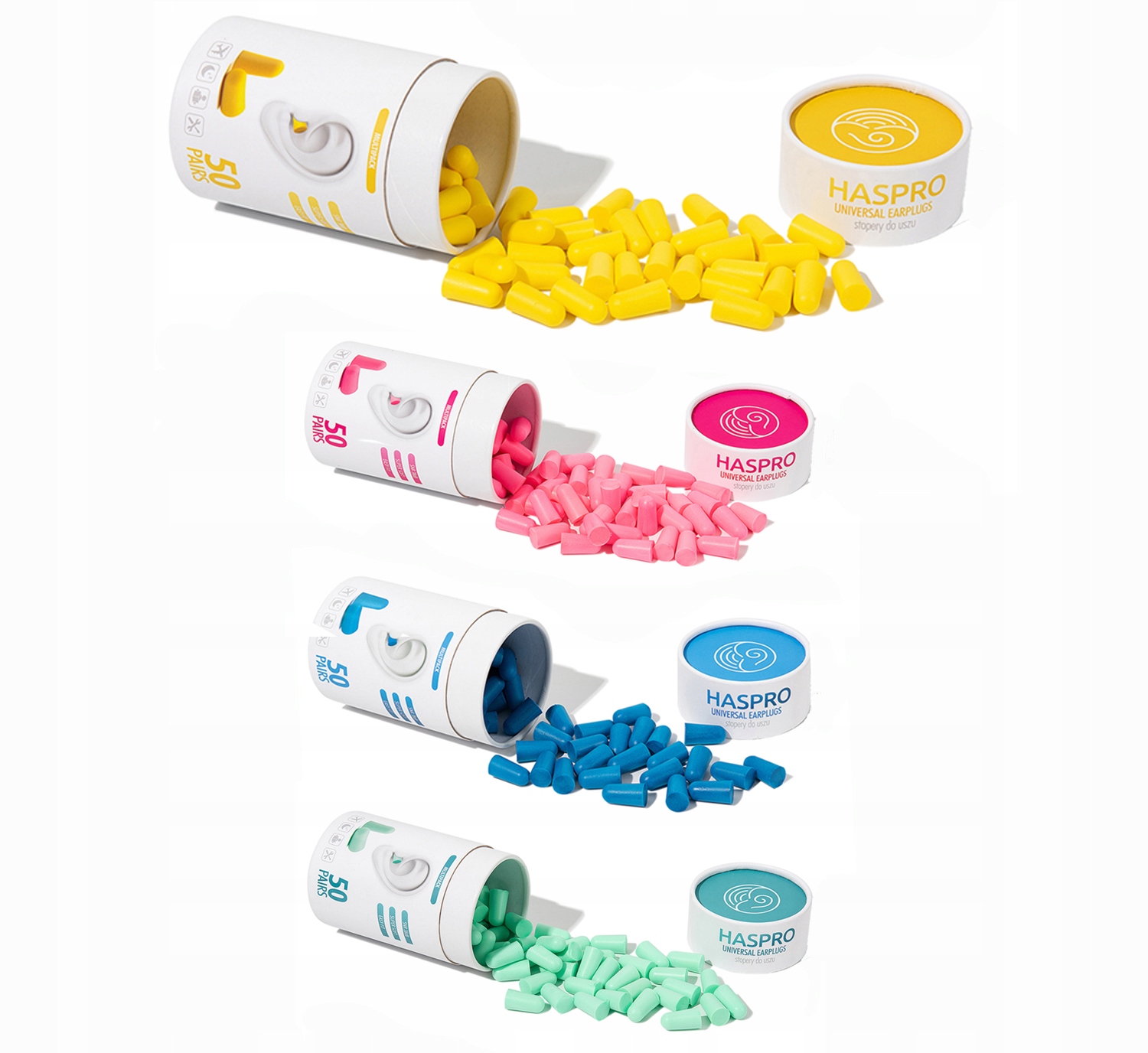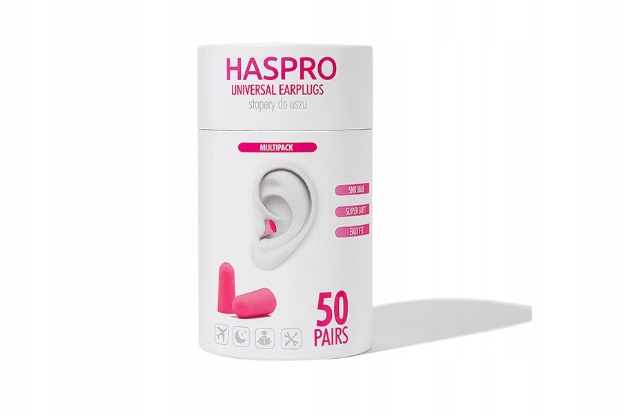 Haspro Tube50 — це сучасна збірна упаковка у вигляді туби, що містить 50 пар одноразових вушних вкладишів із зручного та надзвичайно ніжного пінополіуретану, який дуже легко пристосовується до кожного вуха в менше хвилини.