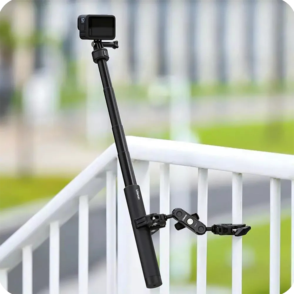 ✔️ Затискач дає нам багато варіантів кріплення в студії та на вулиці. Натиск метелика регулюється та є дуже сильним, тож його можна регулювати на предмети різної товщини, наприклад, стіл, паркан, гілку, трубу, кермо, скейтборд тощо. Тримач також має гладку регулювання положення в межах 360 градусів.