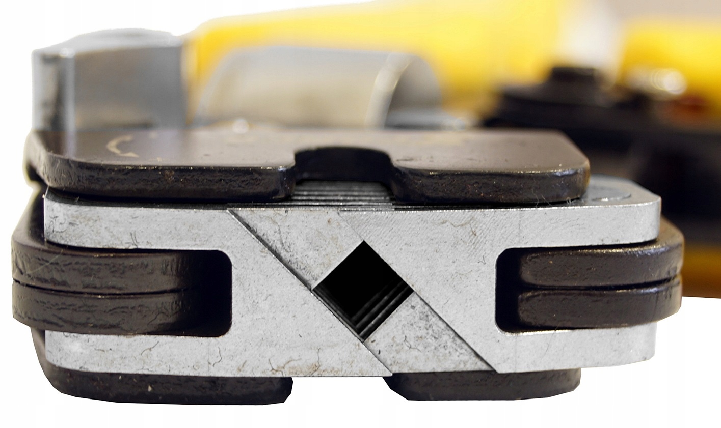 При переміщенні болта в напрямку - мінус плашки звужуються, а сила натискання є дуже високою, завдяки чому прес ефективно затискає навіть найменша гільза.