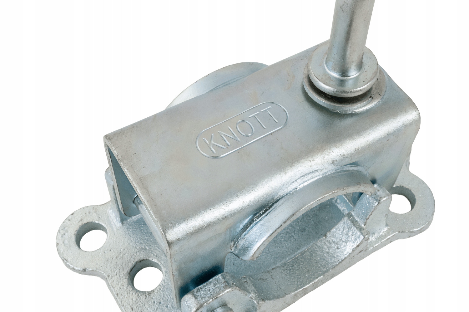 Корпус затискача KNOTT 4802869X виготовлений із міцного сталевого лиття, що забезпечує високу стійкість до навантажень і сил, що діють при маневруванні причепа. Це довговічне рішення для щоденного використання в складних умовах.