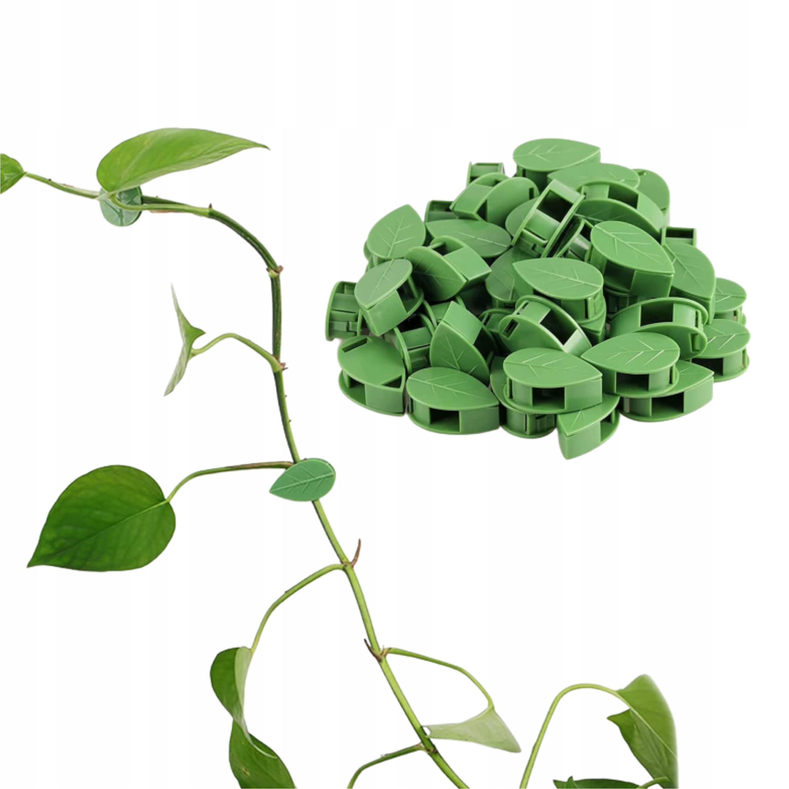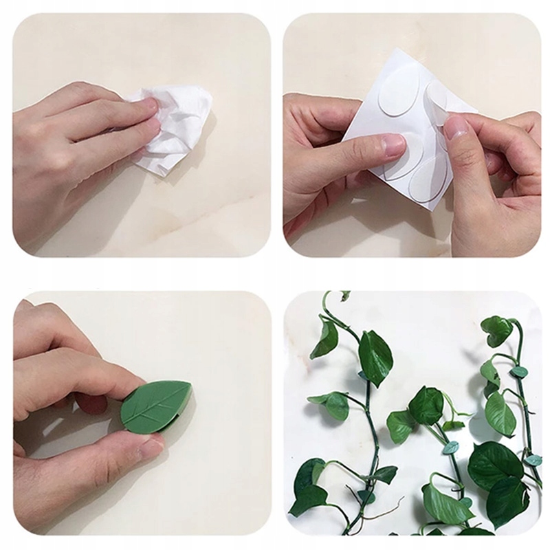 Затискач для рослин у формі зеленого листя виготовлено з ABS-смоли, яка є дуже довговічною та екологічно чистою. Кліпсу можна міцно приклеїти до поверхні. Не залишає слідів після видалення.
