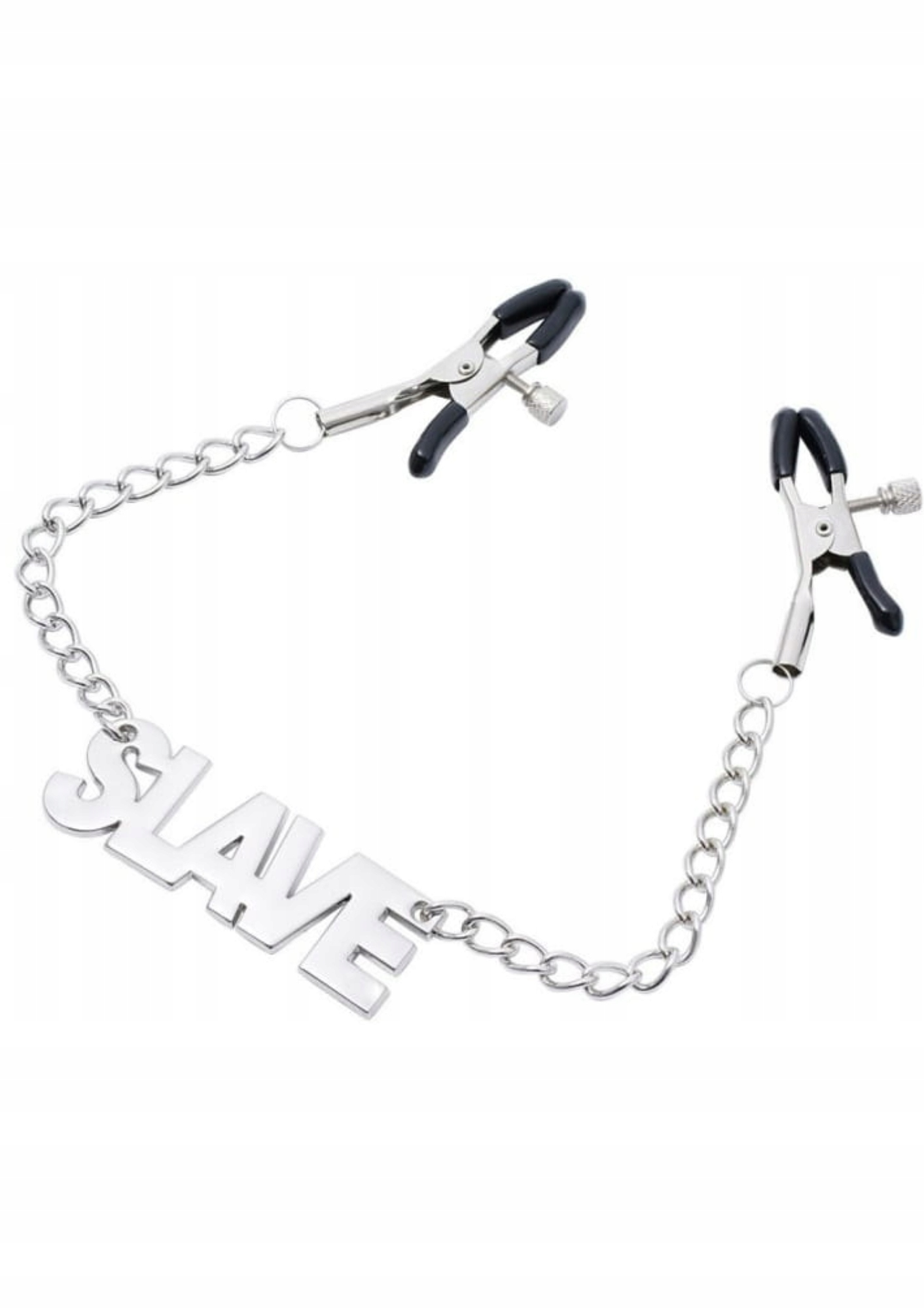 Затискач для сосків з ланцюжками з обох боків додає пікантності будь-яким стосункам. Їх металева конструкція забезпечує довговічність і надійну роботу, а декоративна пластина «Slave» додає елемент домінування та підпорядкування.