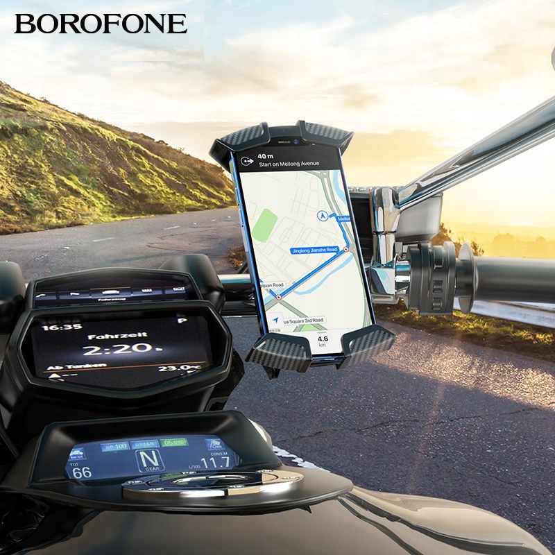 BOROFONE BH72 Airfly — міцний тримач для телефону, призначений для кріплення на раму велосипеда, скутер, скутер або мотоцикл/мотоцикл. Ручку також можна встановити на раму коляски, діаметр рами повинен бути від 22 до 32 мм.