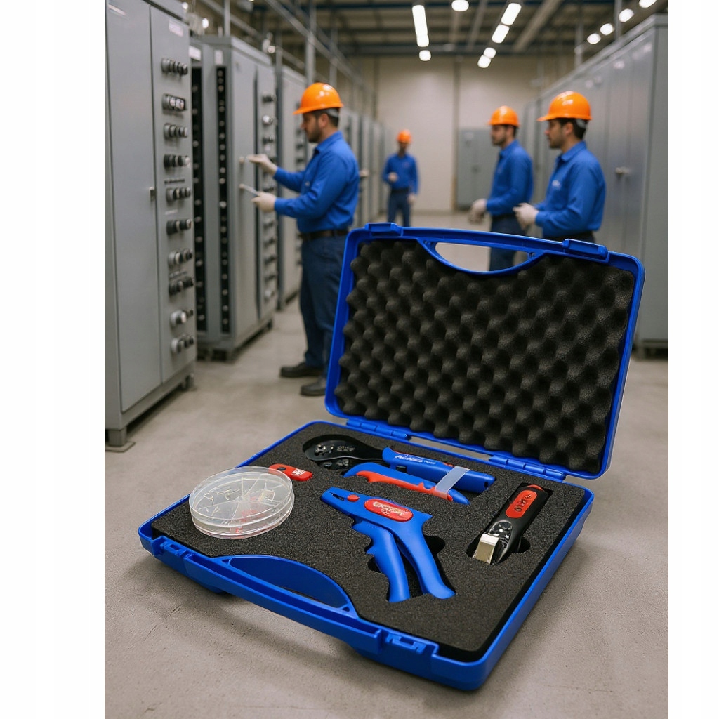 Набори валіз Energotytan серії W — це рішення, створені професіоналами для професіоналів. Завдяки компактній конструкції новий прес забезпечує відмінні результати роботи навіть у важкодоступних місцях. Можливість вільного керування однією рукою робить цей інструмент особливо корисним для монтажників комутаційних щитів, а також монтажників електрики та телекомунікацій. Чемодан-набір зі змінними плашками ENERGOTYTAN W179 - ідеальне рішення для тих, хто хоче придбати інструмент, що забезпечує максимальну ефективність роботи, зручність у використанні та постійний рівень якості з'єднань за розумною ціною. Технологія змінної матриці робить його більш універсальним і, отже, ефективнішим.