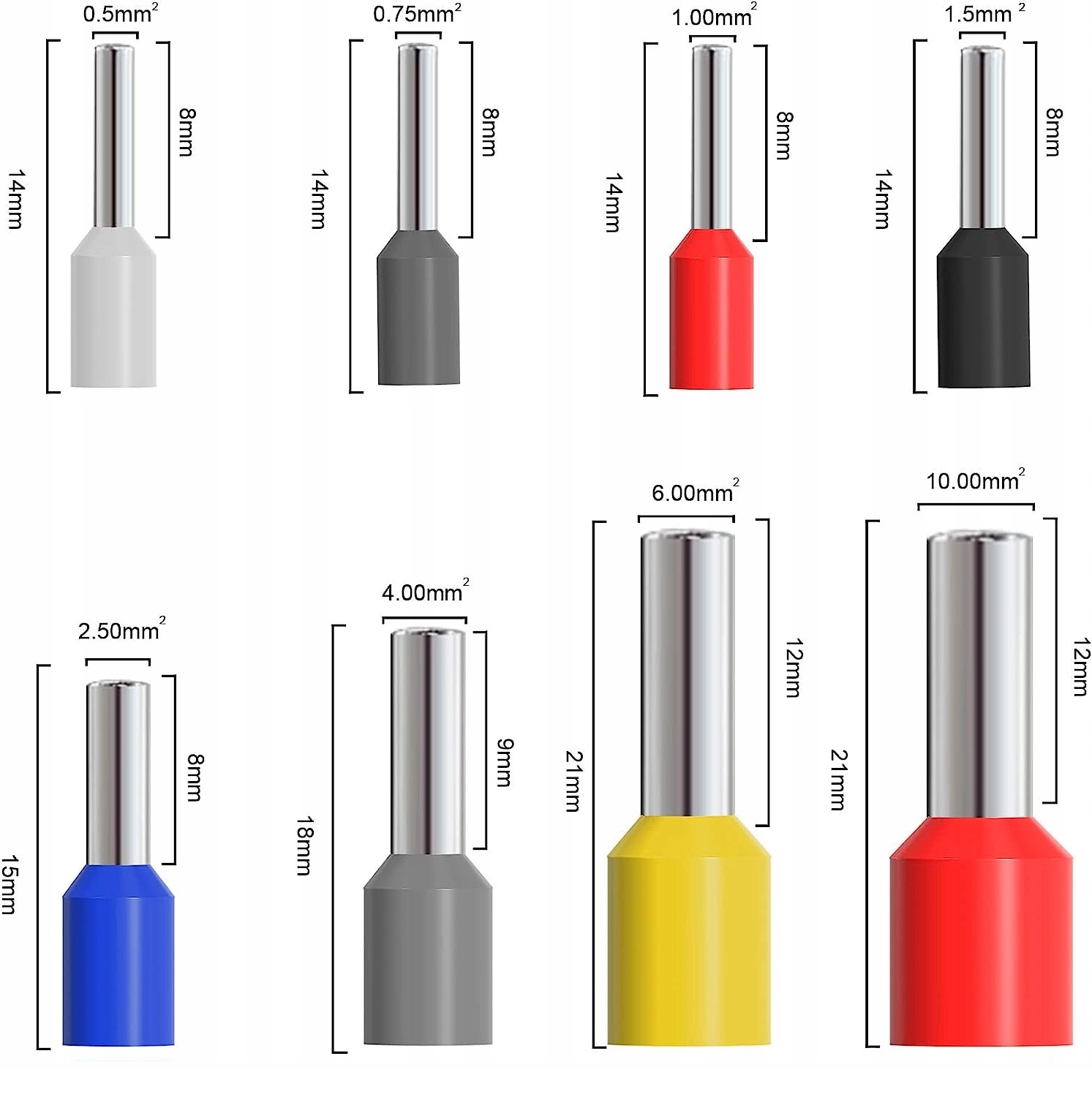 ✅250 шт наконечників 1,5 мм2 x 8 мм