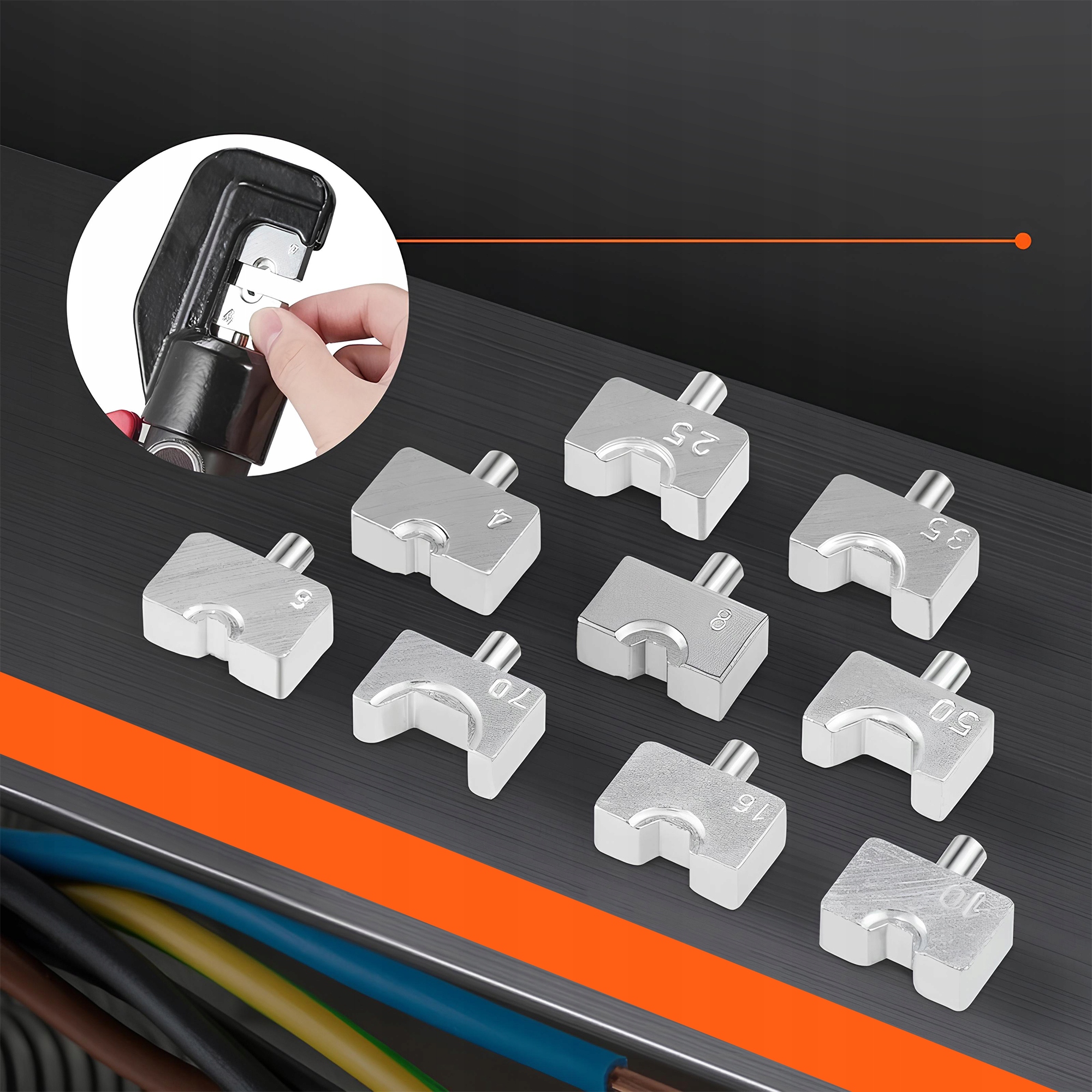 - Загартовані матриці включені: 4, 6, 8, 10, 16, 25, 35, 50, 70 мм