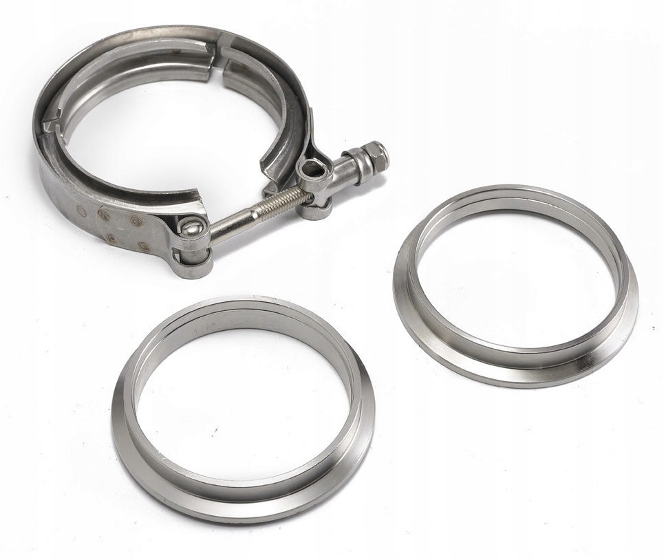 Хомутик V-подібний з фланцем для з'єднання елементів вихлопної системи. Призначений для створення ідеального з'єднання з турбокомпресором або вихлопною системою, виготовлений на верстатах з ЧПК. Це значно полегшує встановлення напр. водостічні труби, без зайвих комбінацій.