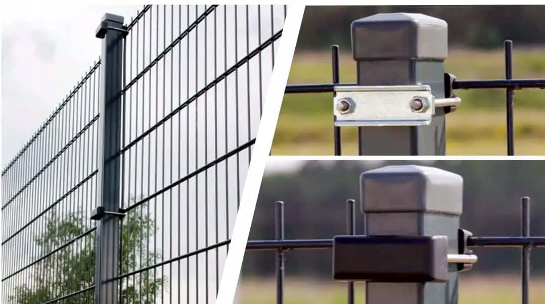 Властивості: - дуже міцне з'єднання панелей (2D тип 6/5/6 або 8/6/8 та всі типи 3D панелей) зі стовпом огорожі, - переднє кріплення з дуже міцного матеріалу PA, - оцинкований замок, закріплений маскувальним ковпачком із атмосферостійкого матеріалу, - естетичний вигляд, - морозостійкість, - затискач і гайки з нержавіючої сталі A2.