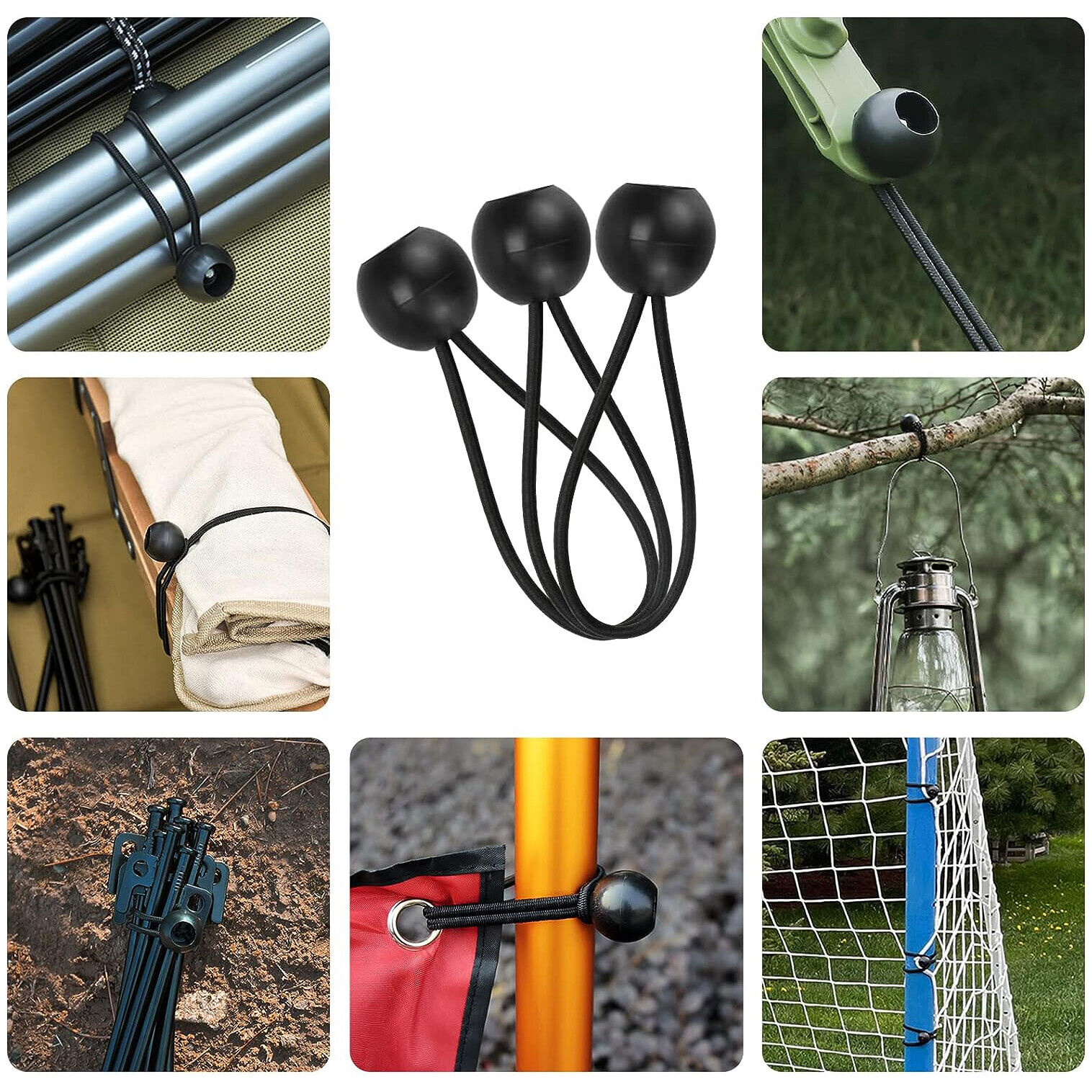 🍃【Кількість, розмір】У комплект входить 10 затискачів для брезенту, 10 шнурів для банджі та 10 затискачів для карабінів.
