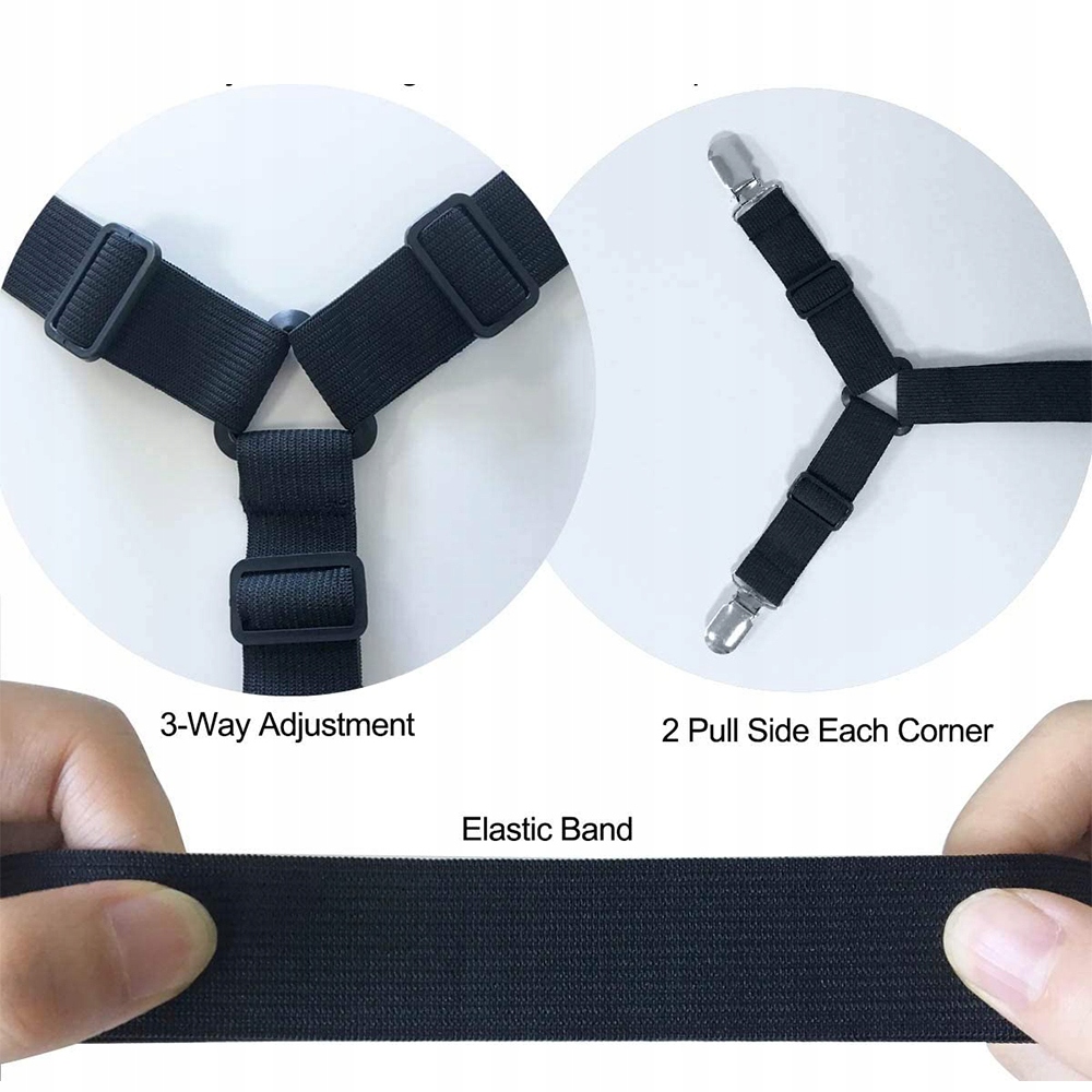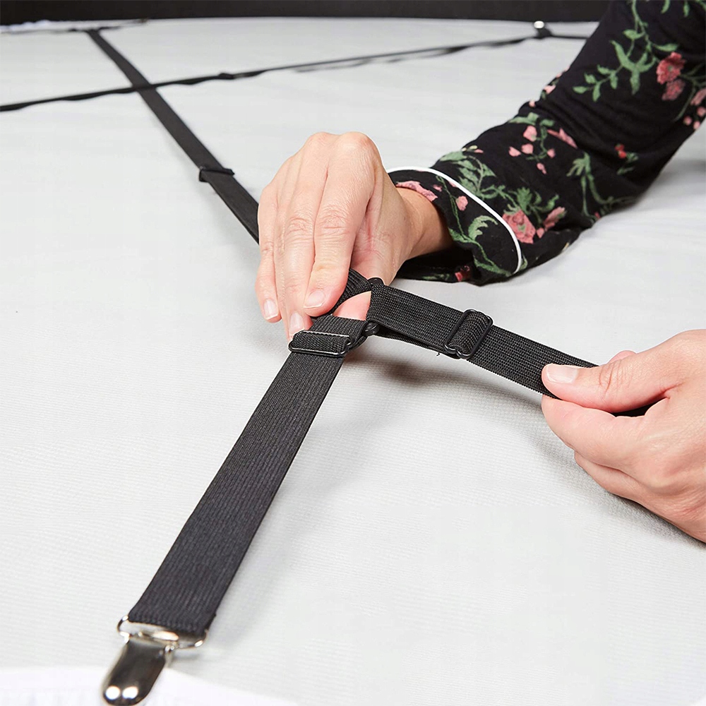 Підходить до різних ліжок. Ідеально підходить для облягання та плоского простирадла, регульована довжина забезпечує бажане натягнення. Чудово підходить для постільної білизни та чохлів для матраців; Затискачі для скатертини.