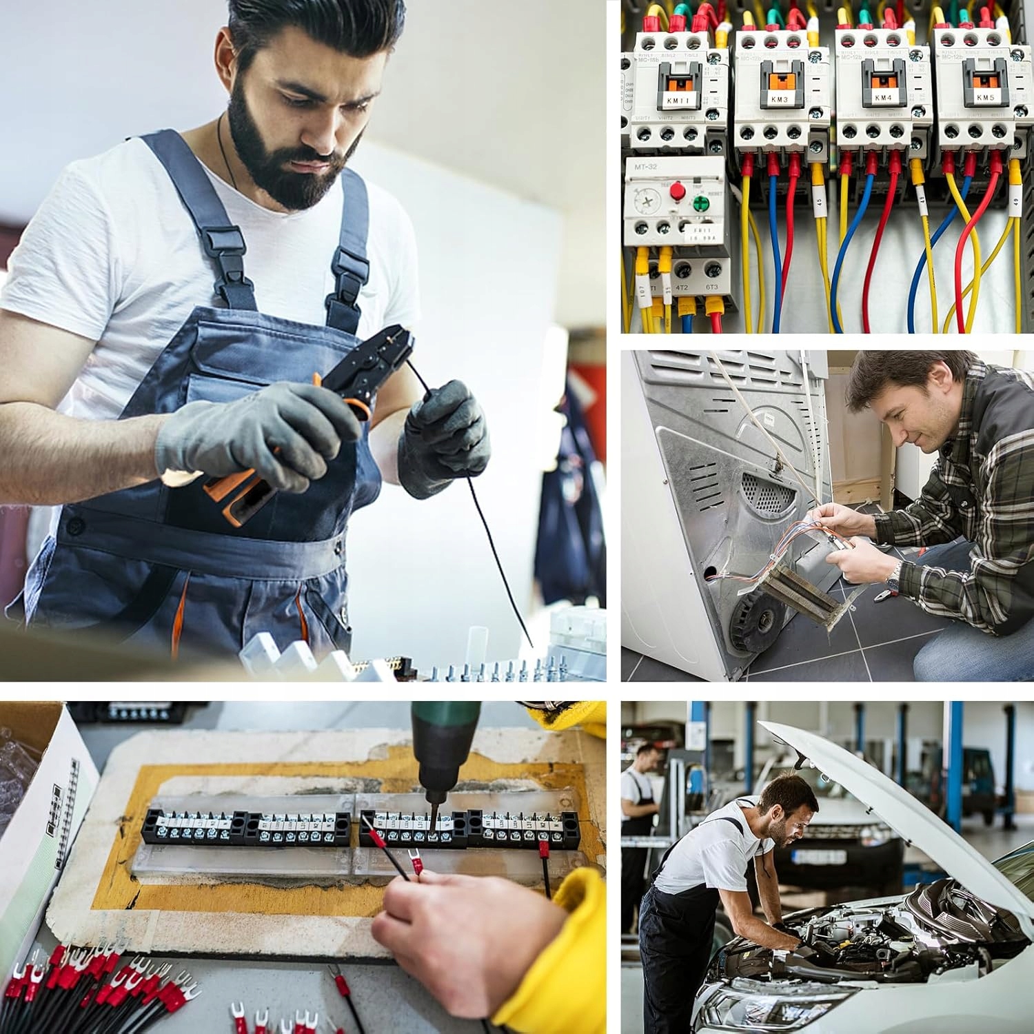 плиткові плоскогубці виготовлені з високої вуглецевої сталі, стійкі до високого стирання, високого рівня захисту, водонепроникної поверхні, корозійної стійкості для захисту функції електронної пробки. Затискачі затискачі виготовлені з високоякісної латуні та міді, покритих нікелем, стійкість до високої температури, стійкість до старіння, стійкість до пробивання, упаковане зберігання, довговічність. Звичайні плоскогубці для кабельних затискачів оснащені коробкою. Існує 18 різних типів кліпів, які можна використовувати багато разів, кабелі є суцільними і нелегко розслабитися. Червоний для (0,5-1,5 мм/2,5/GG22-18), синій для (1,5-2,5 мм2/AWG16-14), жовтий для (4-6 мм2/AWG12-10).