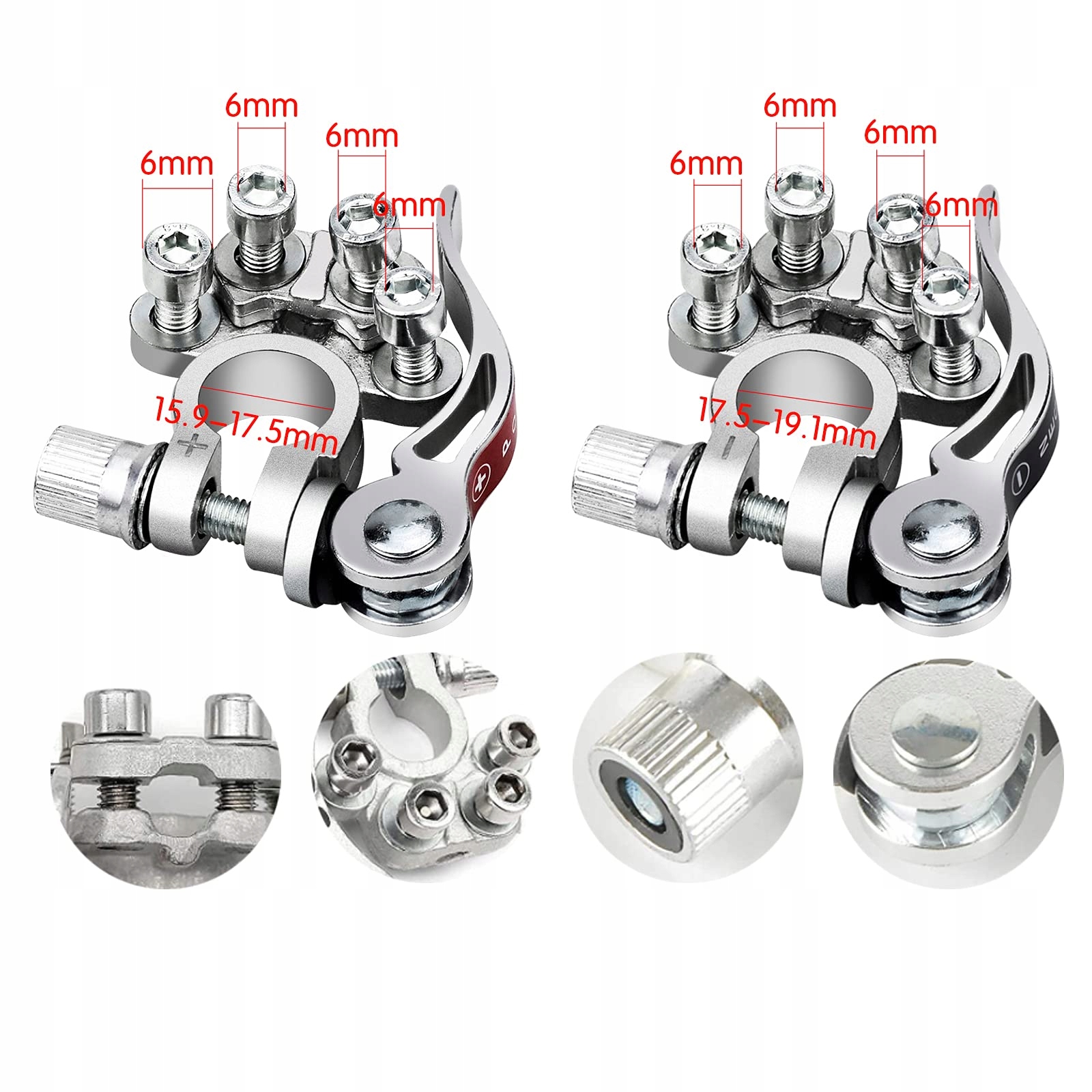 - Розмір - підходить для проводів з діаметром 5,2 - 7,4 мм (датчики AWG 1 - 4) або перехрестя - 16 - 35 мм?. Мінімальний розмір кабелю: 16 мм (5/8 дюймів). Макс. Затискач дроту: 9,5 мм / 0,37 дюйма, Міні -дротяний затискач: 6,5 мм / 0,25 дюйма. Позитивний внутрішній діаметр: 17,5 ~ 19,1 мм, негативний внутрішній діаметр: 15,9 ~ 17,5 мм.