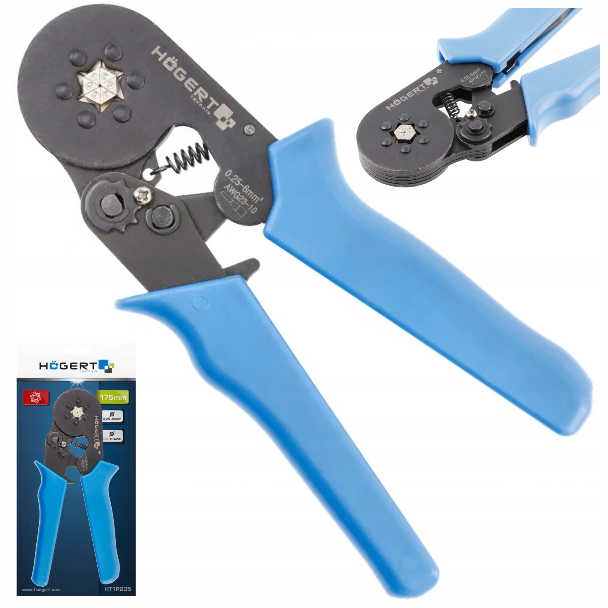 плоскогубці ht1p205 бренди Hogert Technik були розроблені для затягування тонких рукавів (фери), що використовуються в телекомунікаціях, електроніці та монтажі. Обсяг роботи становить 0,25 до 6,0 мм² (23-10 AWG), а довжина інструменту- 175 мм .